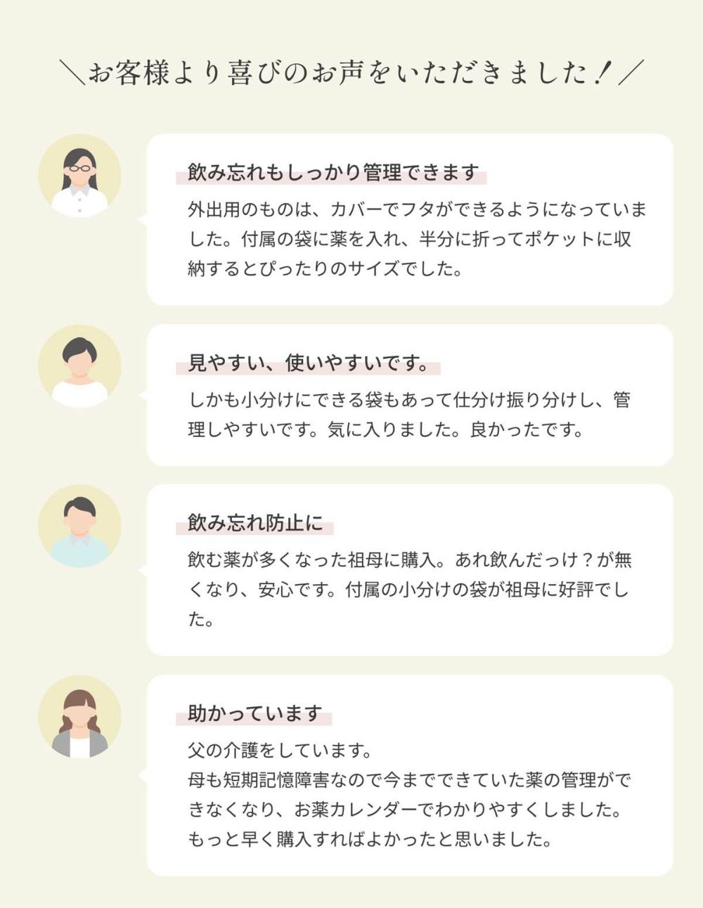 お薬の飲み忘れ防止としても、