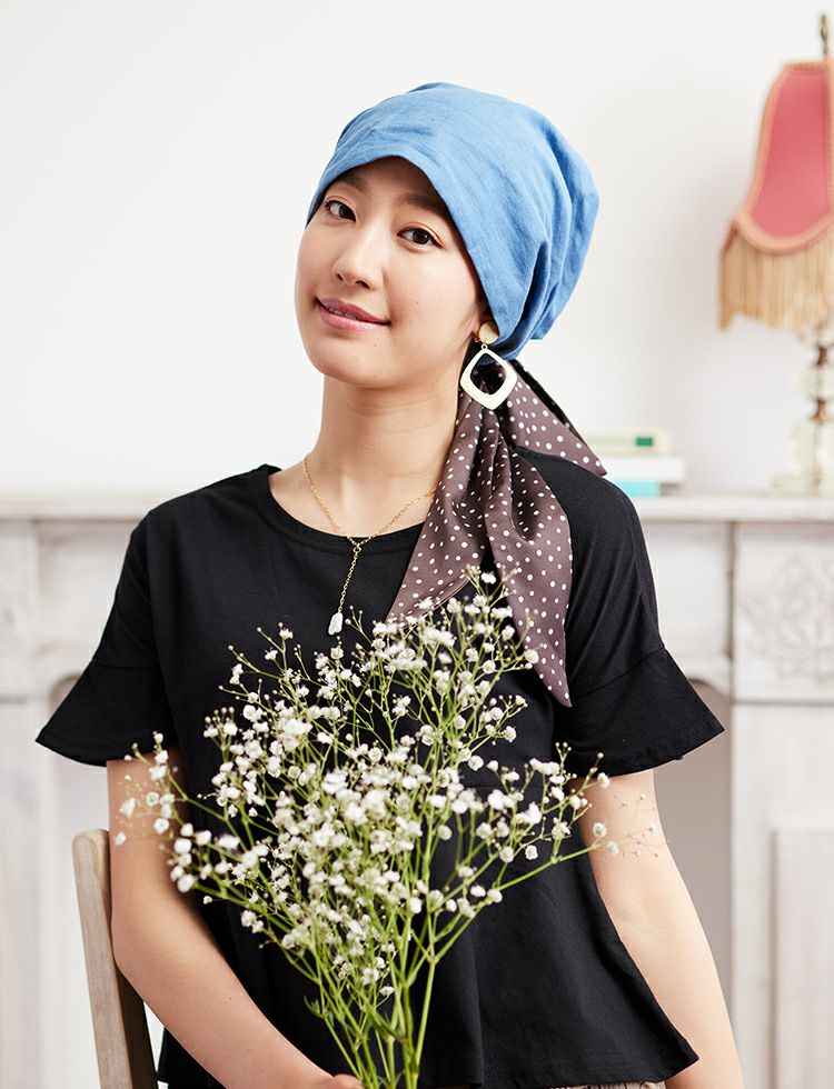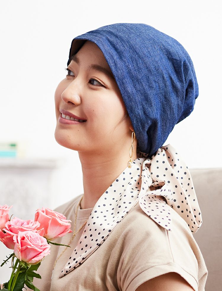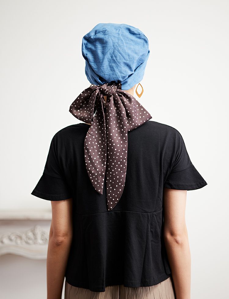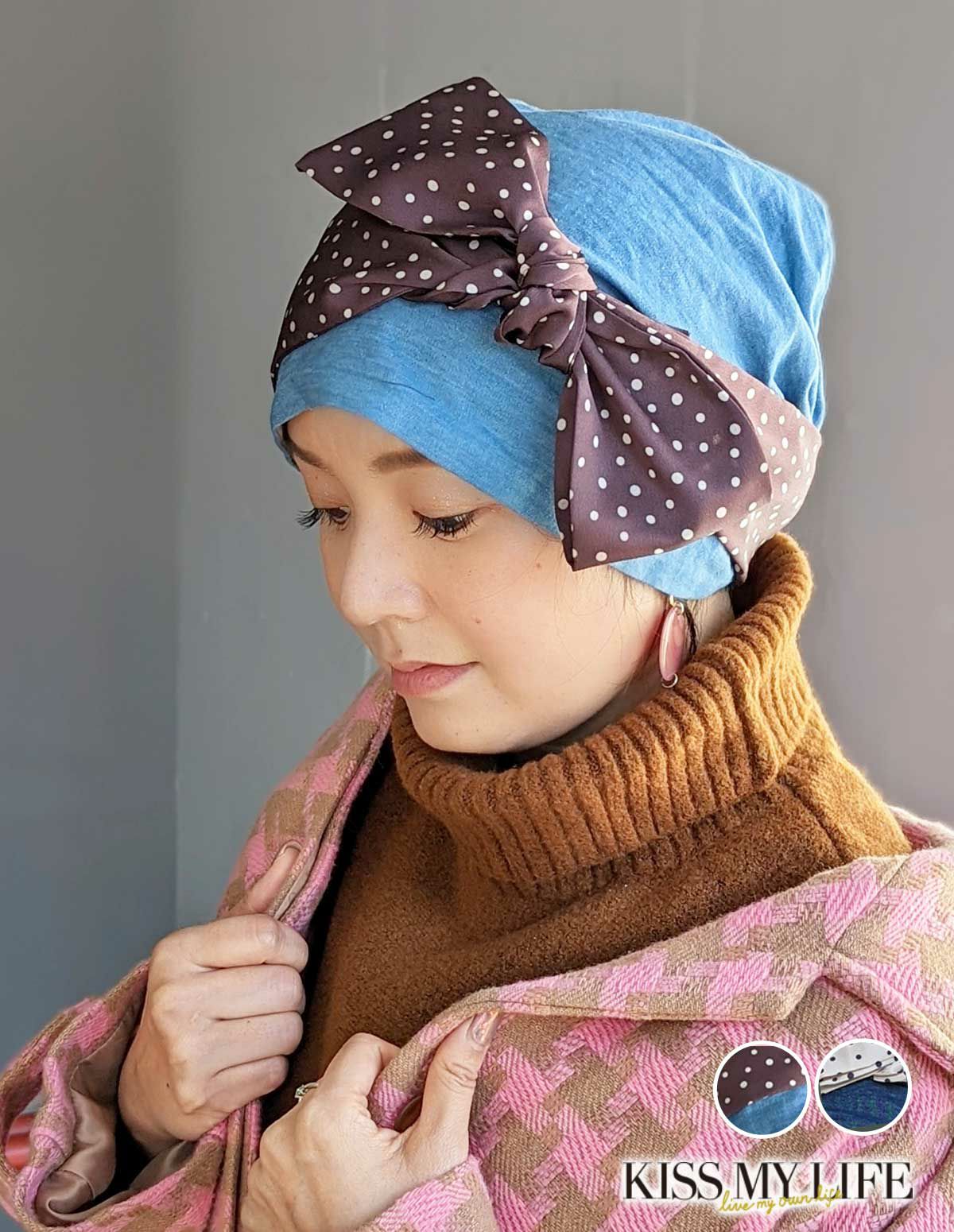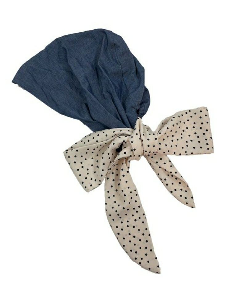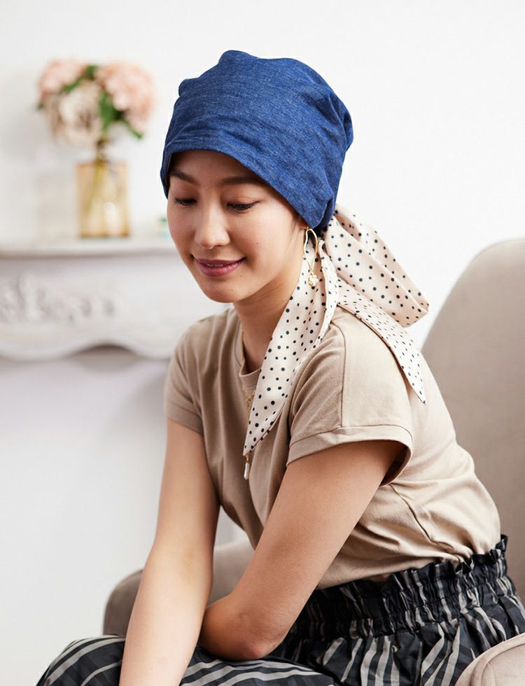 医療用帽子(ケア帽子) -Audrey LUXE- スカーフタイプ/Denim Dots
