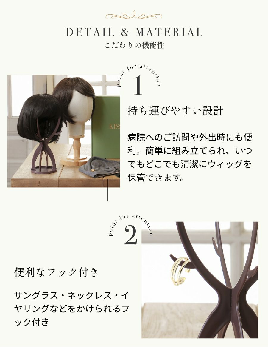病院へのご訪問や外出時にも便利。簡単に組み立てられ、いつでもどこでも清潔にウィッグを保管できます。