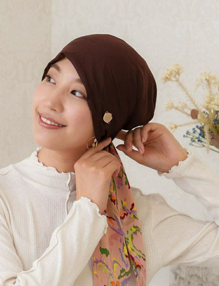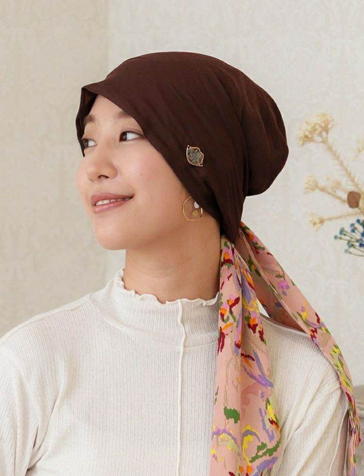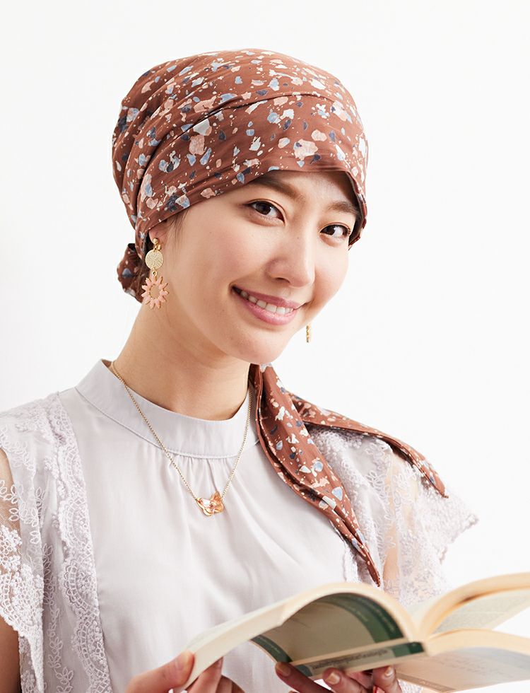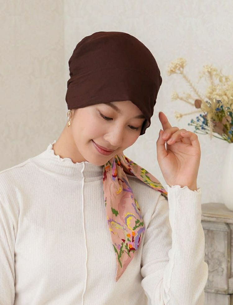医療用帽子(ケア帽子) -Audrey- スカーフタイプ/Chocolat Dot