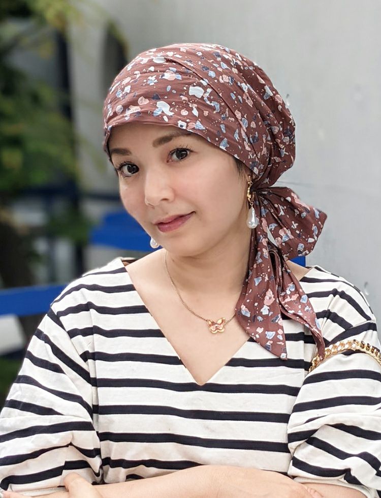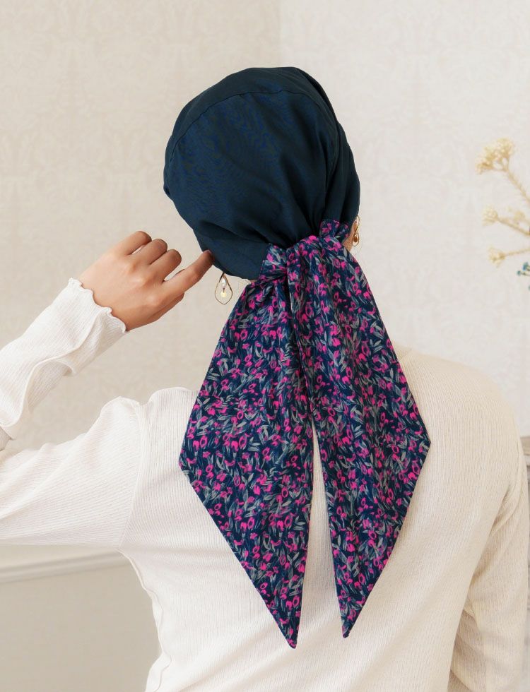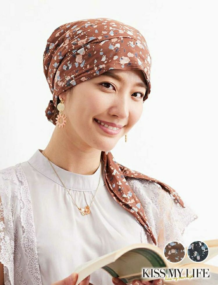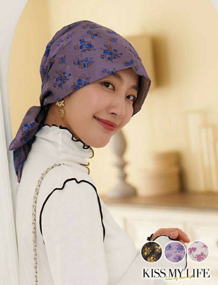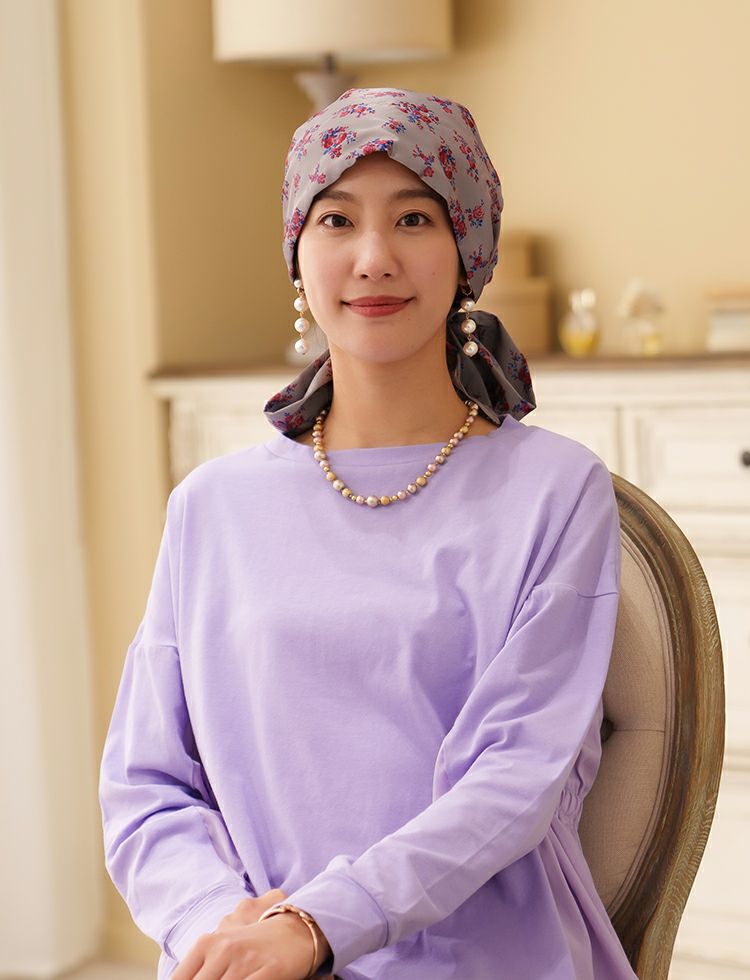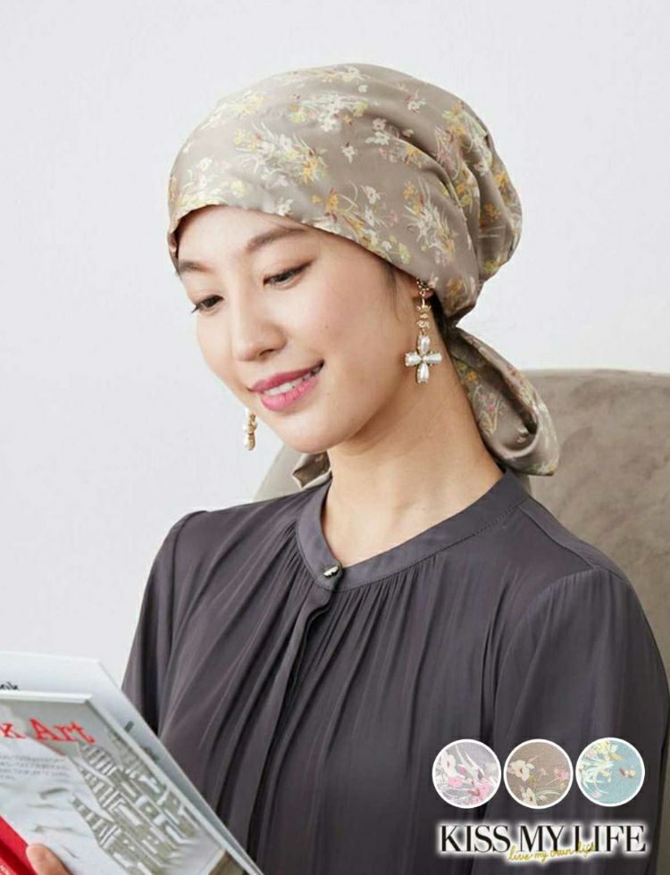 医療用帽子(ケア帽子) -Audrey- スカーフタイプ/花柄