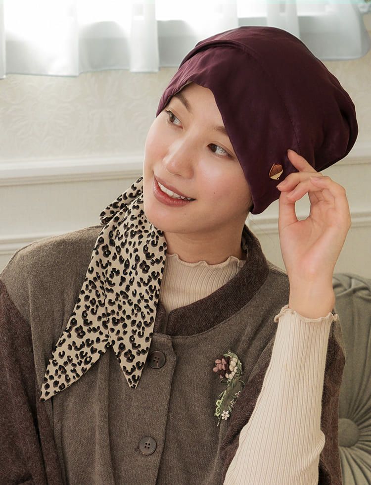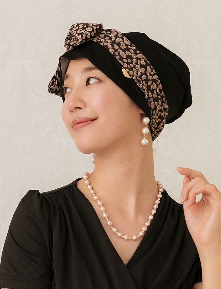 医療用帽子(ケア帽子) -Audrey- スカーフタイプ/レオパード