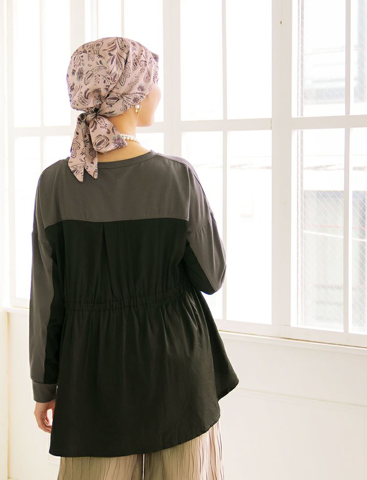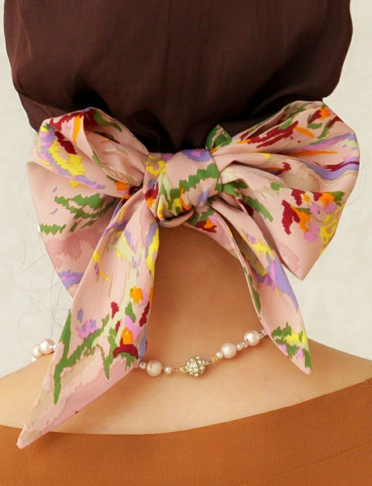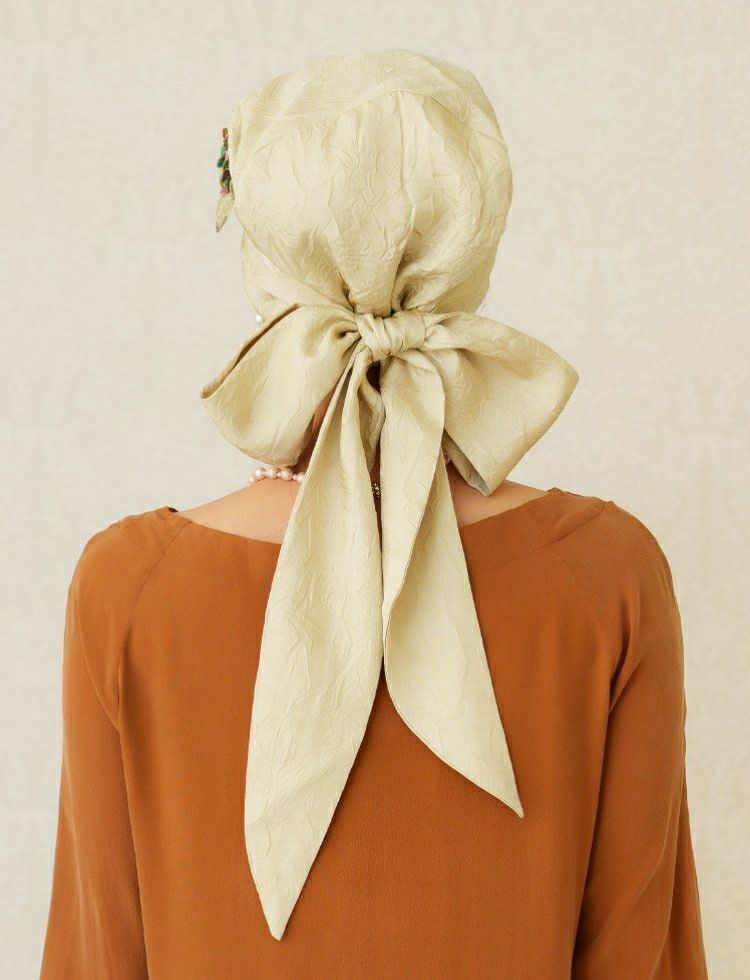 頭の上で、ターバンスタイルにしたり、リボン結びもOK!