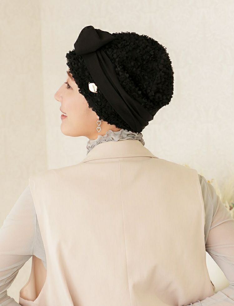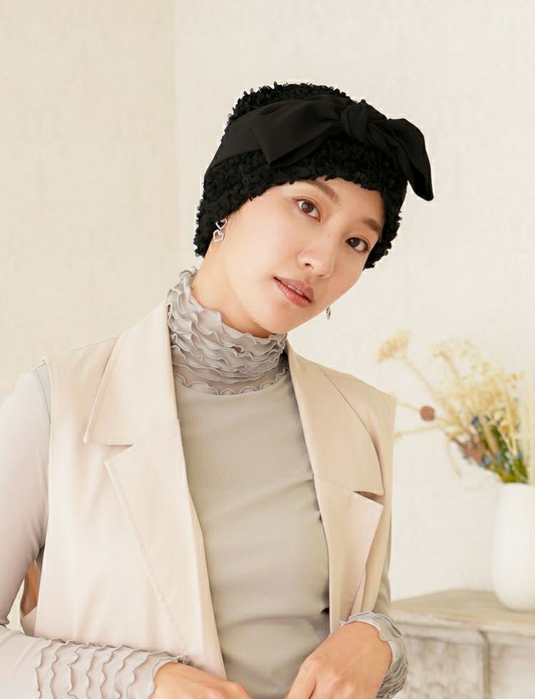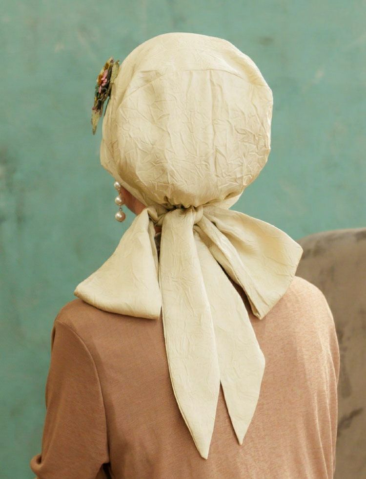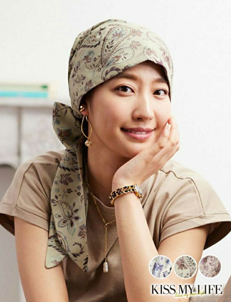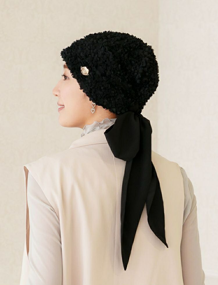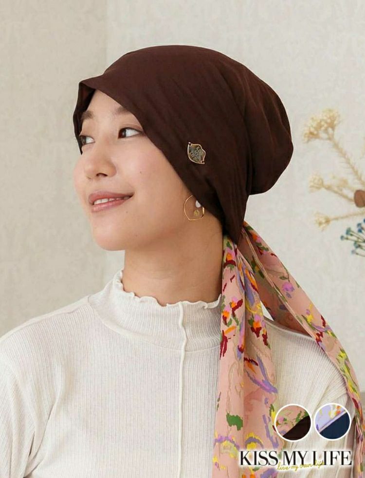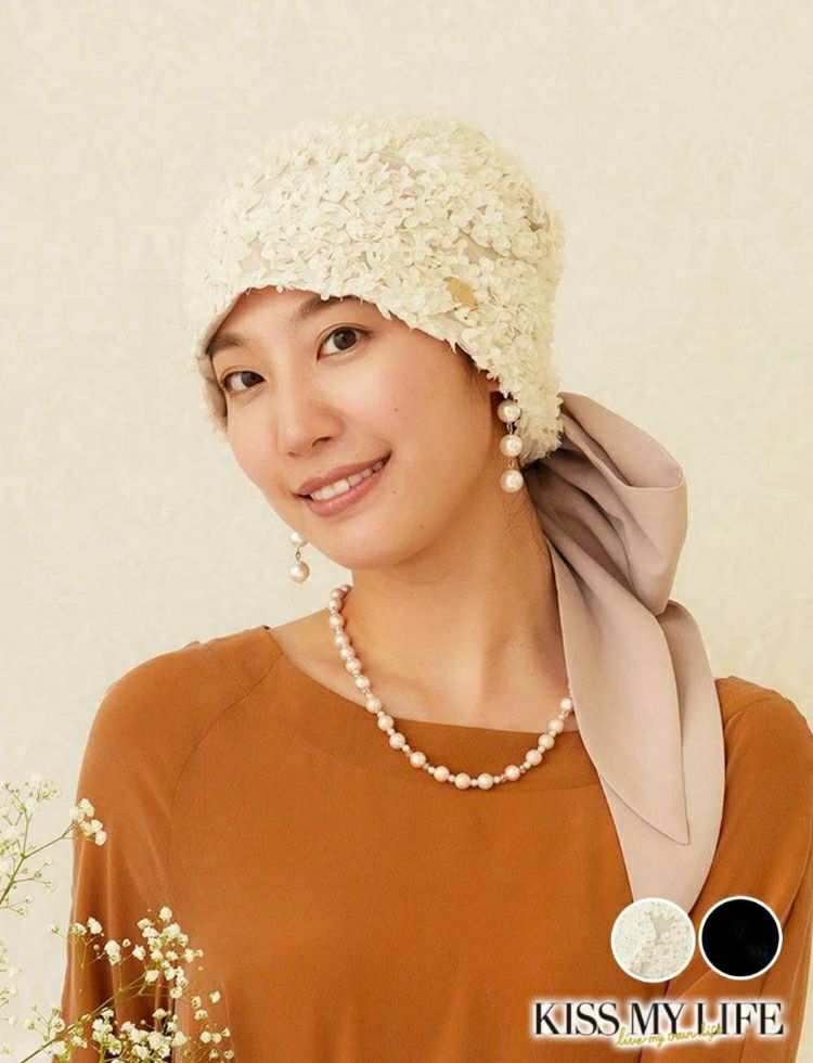 オードリーヘップバーンをイメージした華やかで上品な医療用帽子。KISS MY LIFE一番人気のシグネチャーモデル。ウィッグの上からでも、さっとかぶれて、簡単に結ぶことが出来るスカーフタイプです。