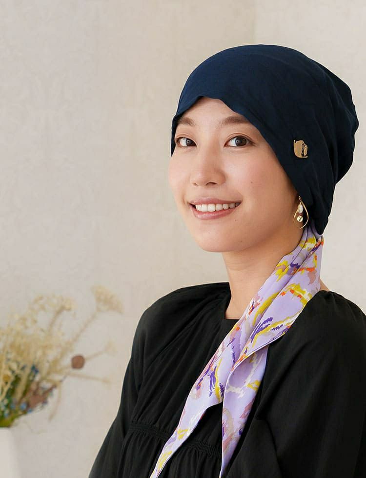 医療用帽子(ケア帽子) -Audrey- スカーフタイプ/ロゴドット