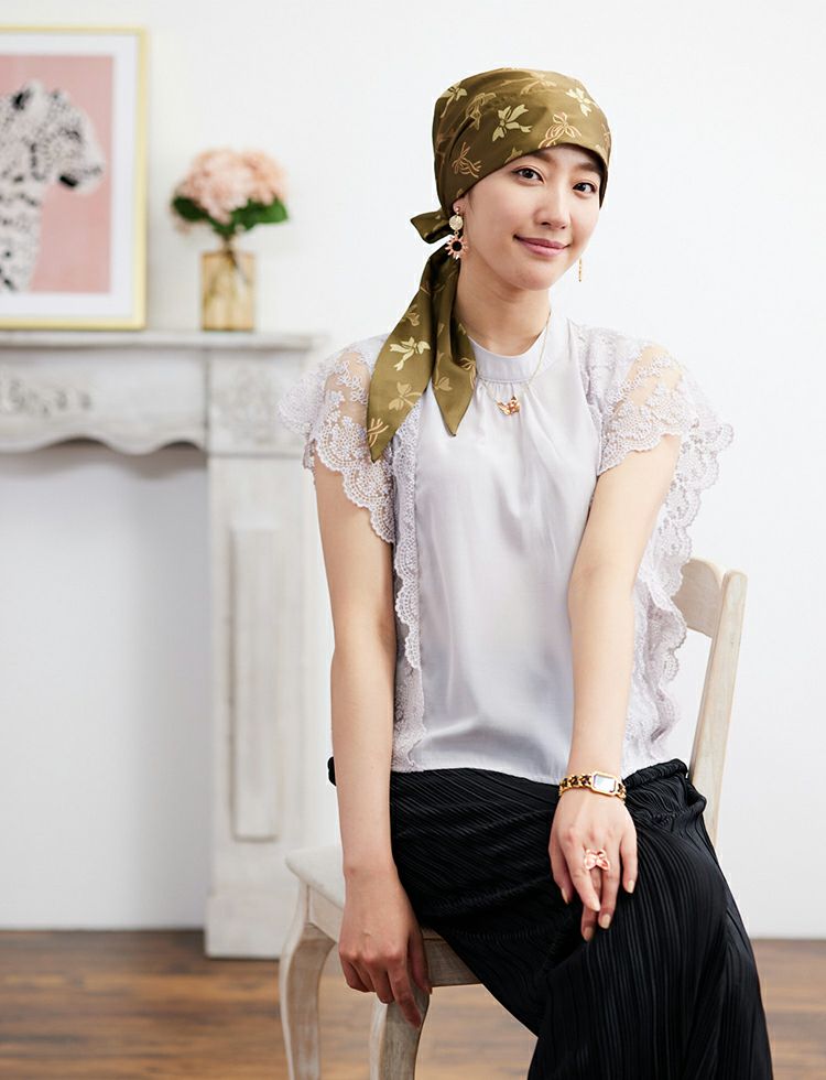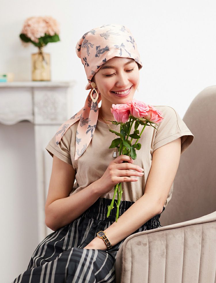 使用する家内(78歳、9月末から抗がん剤治療中)のコメントです。娘から贈ってもらったスカーフがとても気に入り、今回別の模様のものを2種類購入しました。3枚とも大変気に入って、病気を忘れるほど嬉しく使わせていただいております。がん患者の身になっての商品と感心しております。