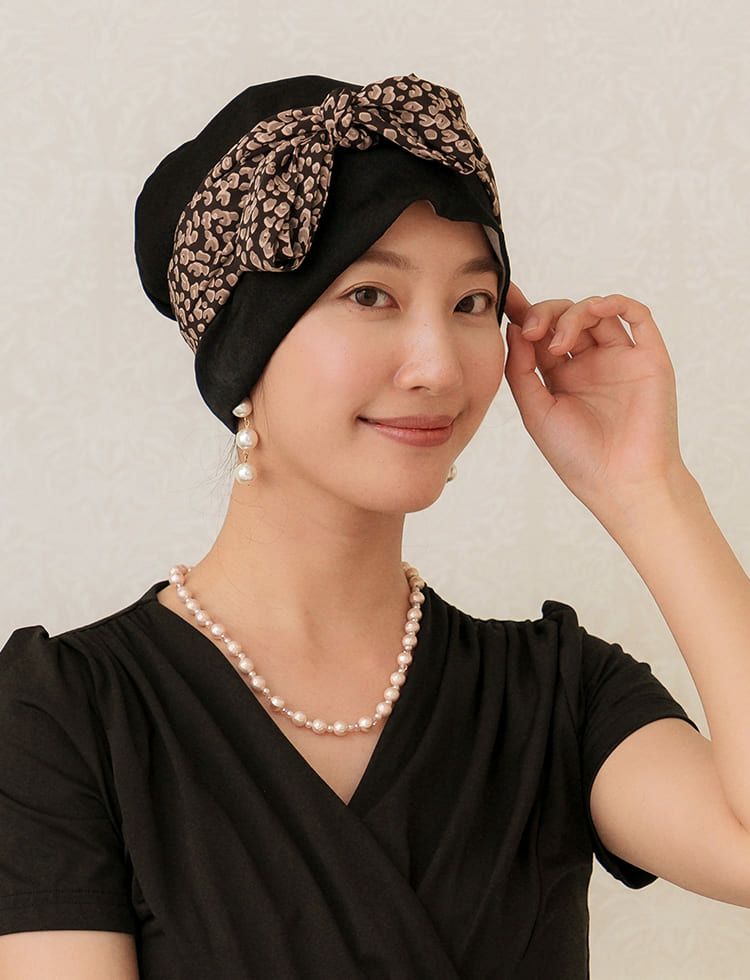 医療用帽子 -Audrey LUXE- スカーフタイプ/ ヒョウ柄