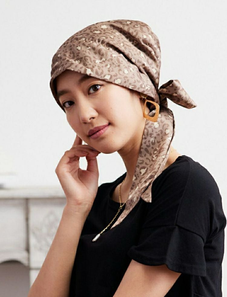 医療用帽子(ケア帽子) -Audrey- スカーフタイプ/レオパード