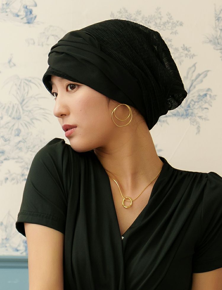 医療用帽子(ケア帽子) -Audrey LUXE- スカーフタイプ/ラメプリーツ