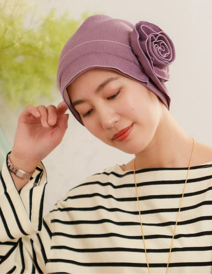 医療用帽子(ケア帽子) -Jean- ニットタイプ /巻きコサージュ ライラック