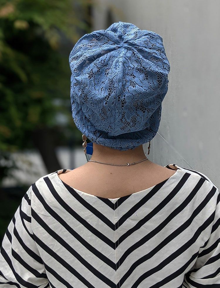 医療用帽子(ケア帽子) -Jean- レースタイプ/スカイブルー&ラベンダー
