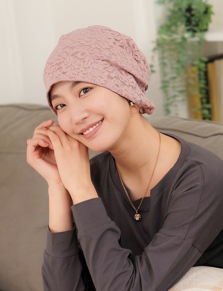 商品について 色味にもこだわった、人気のレース地ケア帽子に新作が登場!