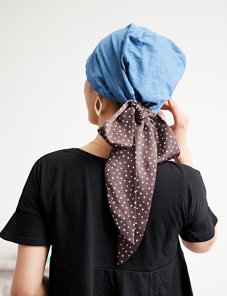 医療用帽子(ケア帽子) -Audrey LUXE- スカーフタイプ/Denim Dots
