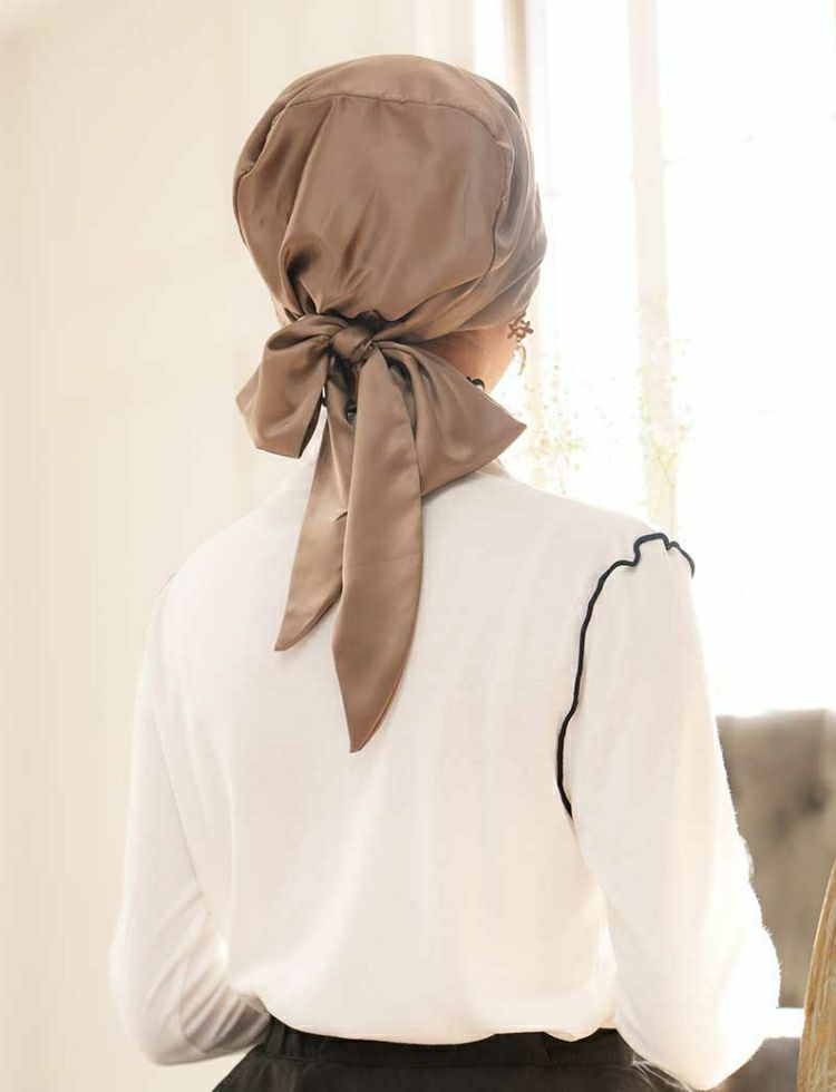 しわになりにくい、上品な光沢のあるシルクタッチ素材!どんな服にもあわせやすく、年間を通して使いやすい生地感です。ライフスタイルのどんなシーンにもパッと被るだけでおしゃれスタイルに! 医療用帽子(ケア帽子) -Audrey- スカーフタイプ/無地