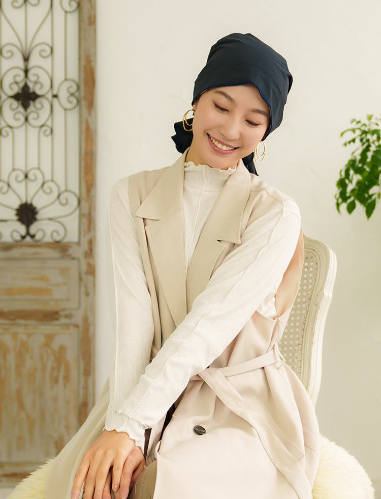 ※伸縮性があるので、ウイッグ使用時でもそのままでもOK!