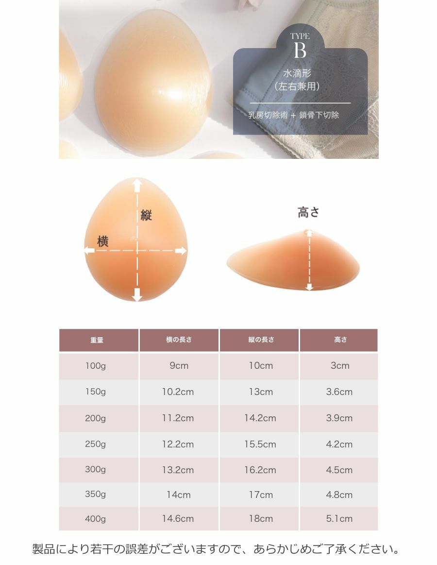 術前のブラジャーサイズに近いサイズがおすすめです。 ただし、初めての方や、重めのパッドが苦手な場合は軽いパッドをお選びください。 ※サイズは目安となります。個人差がございますのでご了承ください