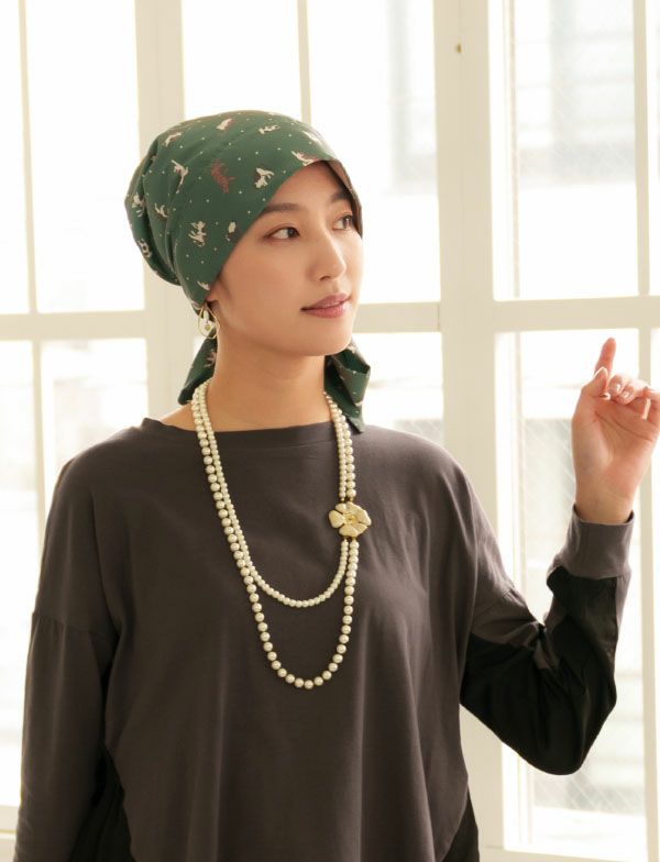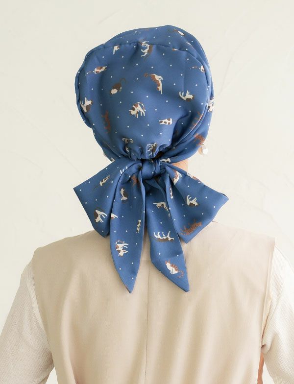 医療用帽子(ケア帽子) -Audrey- スカーフタイプ/猫柄