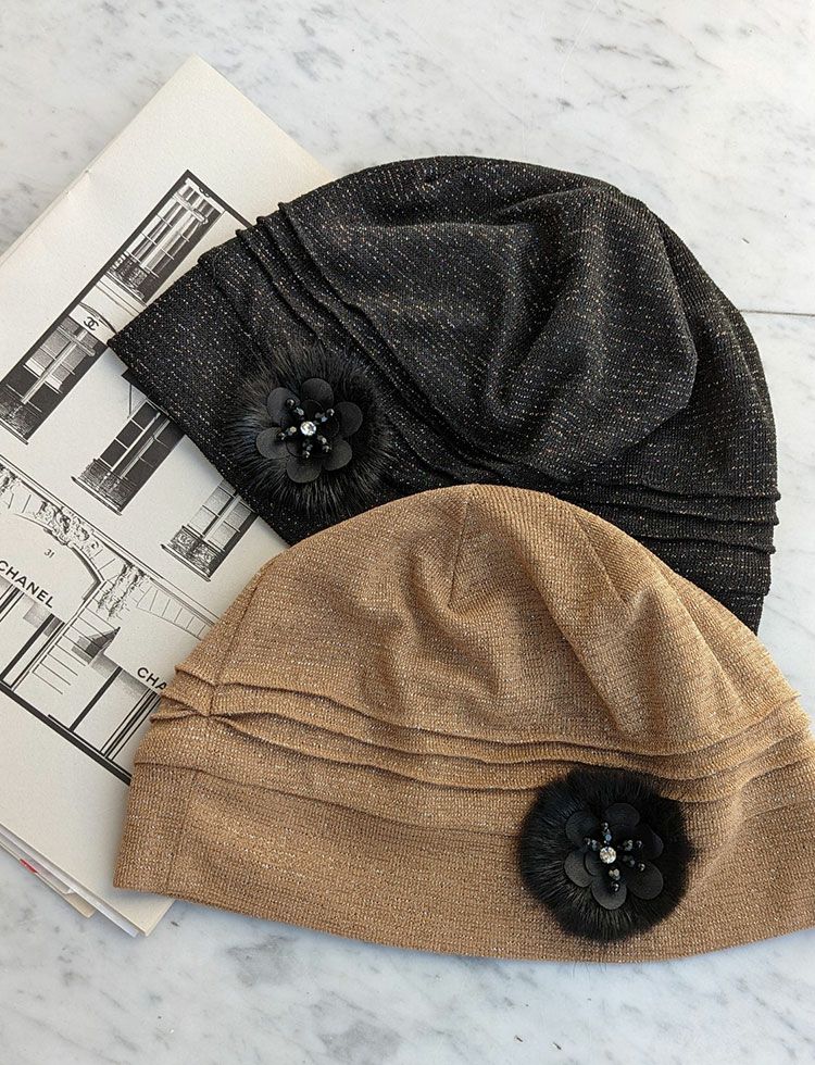 医療用帽子(ケア帽子) -Jean- ドレープタイプ/ファーコサージュ付