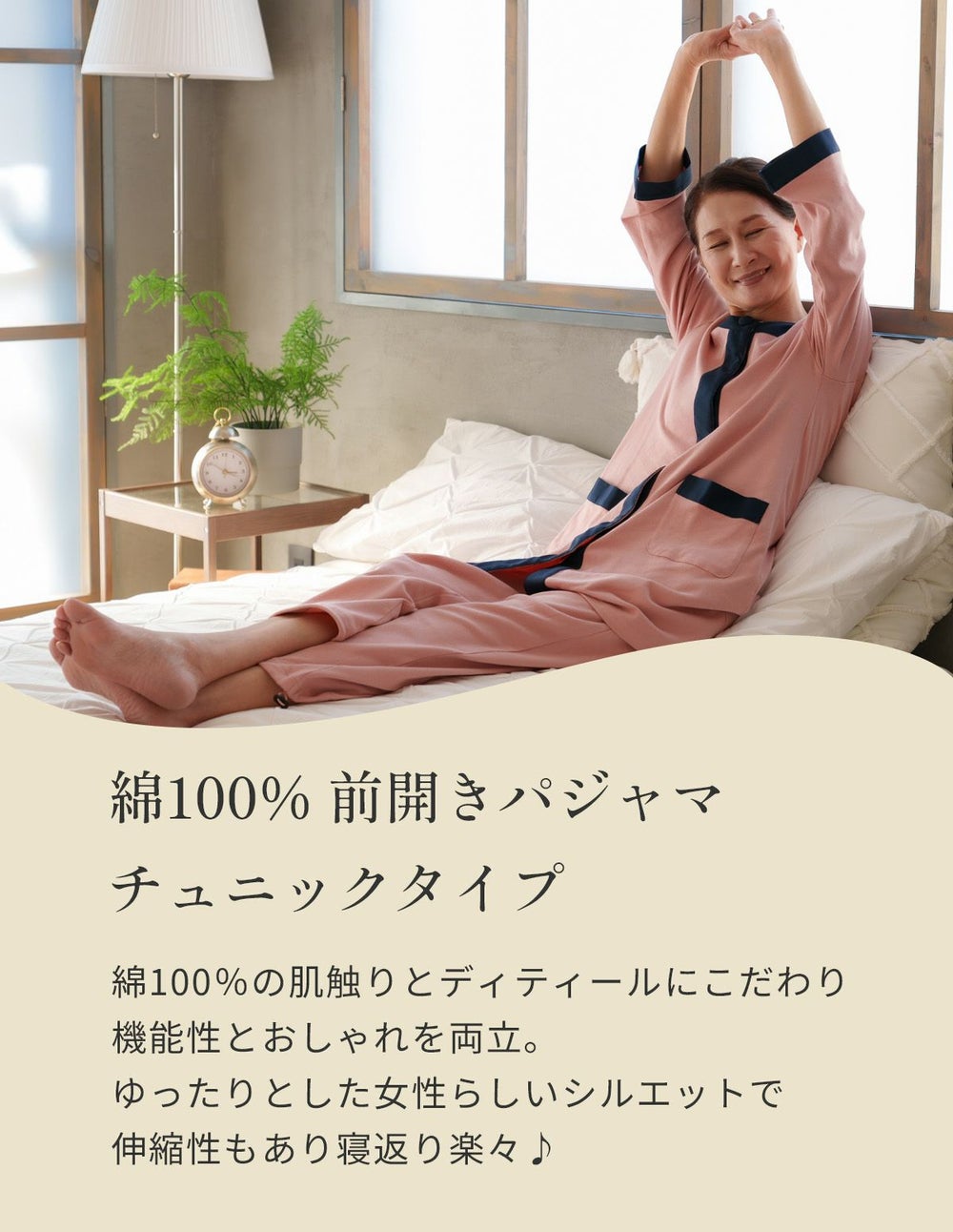 レディースパジャマ チュニックタイプ 前開き 綿100%
