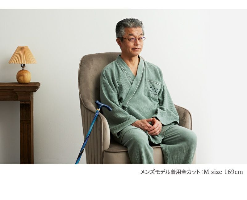 商品名Wガーゼ メンズ 前開きパジャマ 作務衣タイプ
