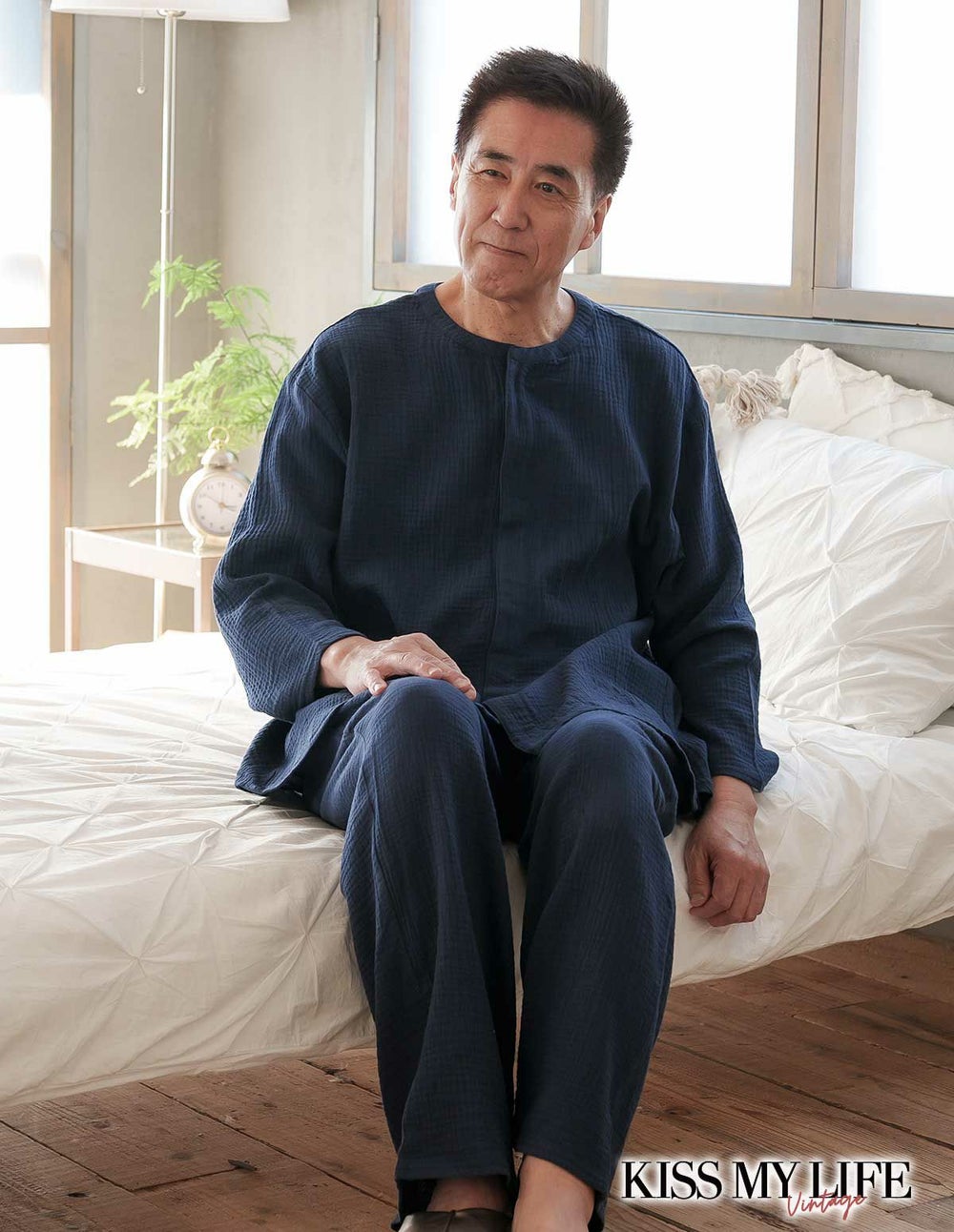 メンズパジャマ 無地 前開きタイプ Wガーゼ