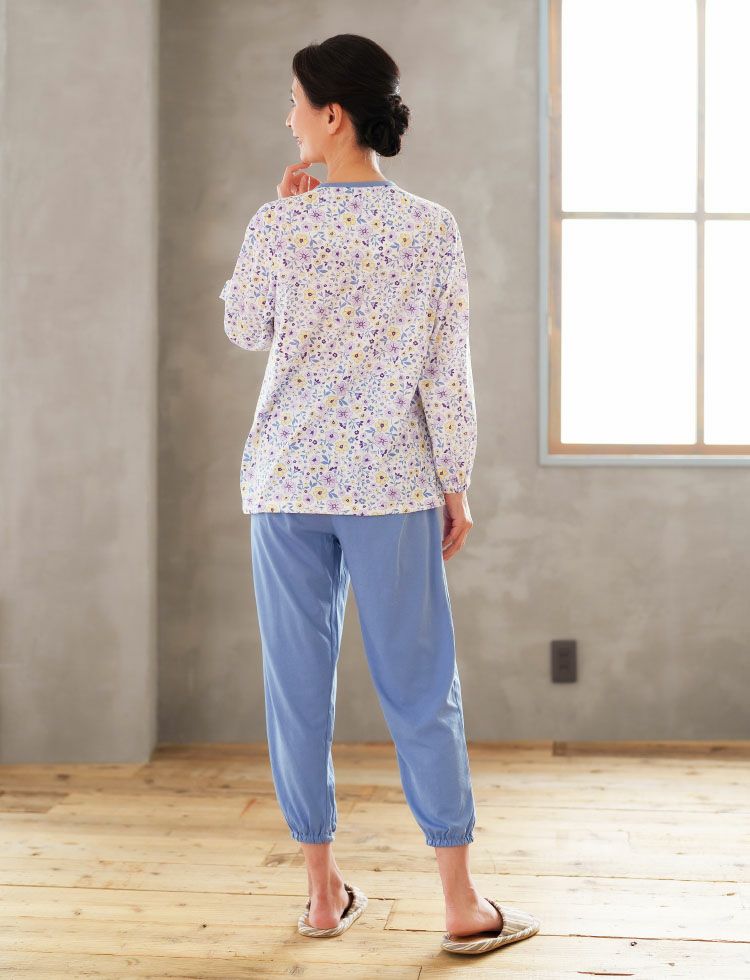 小さいサイズ 前開きパジャマ 花柄