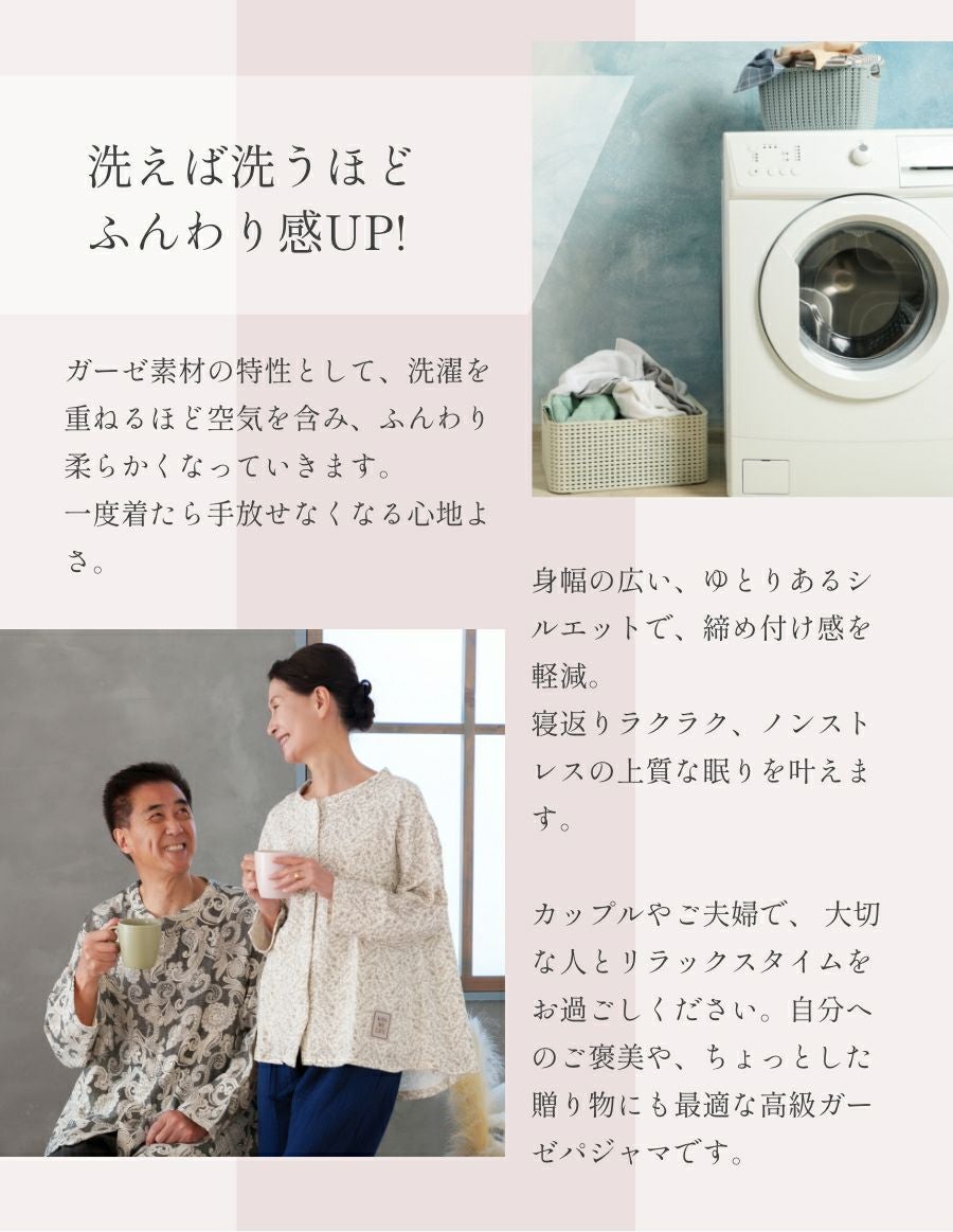 ガーゼ素材の特性として、洗濯を重ねるほど空気を含み、ふんわり柔らかくなっていきます。 一度着たら手放せなくなる心地よさ。