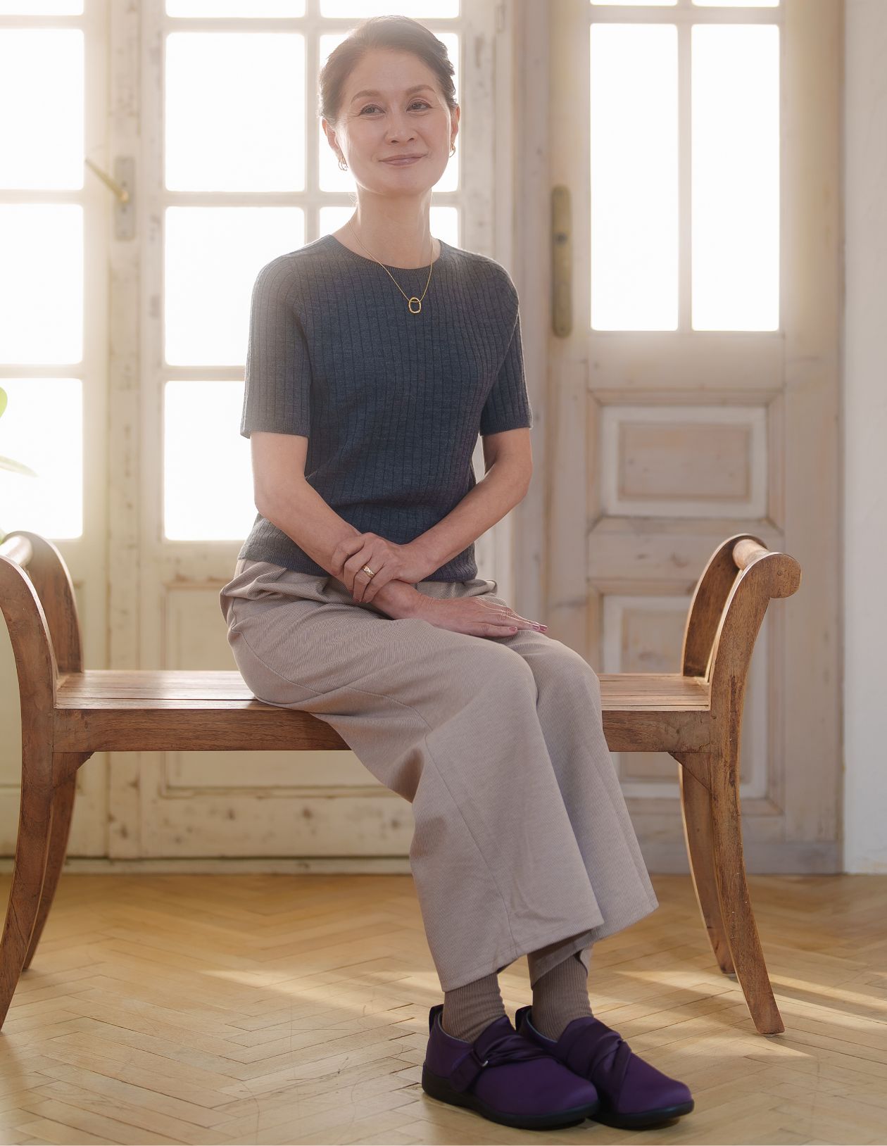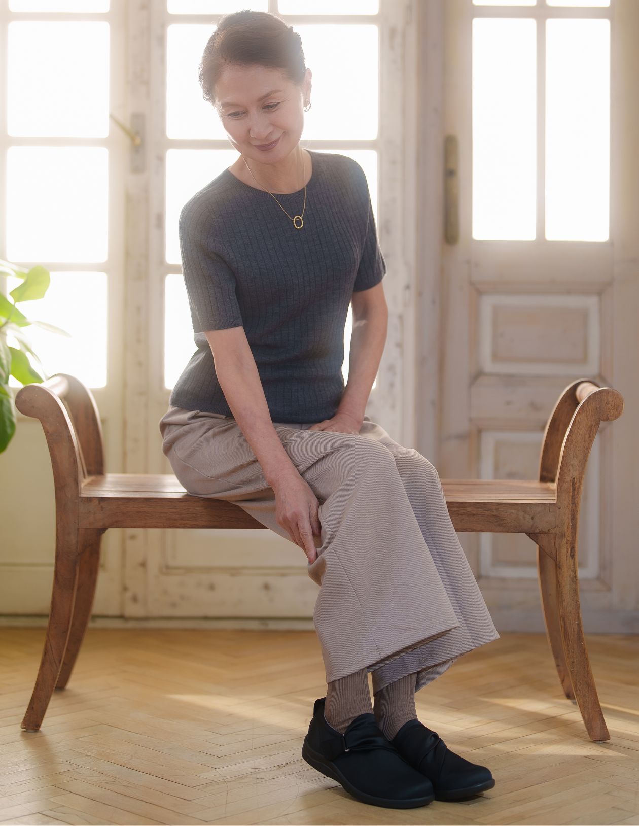 履き口に施されたさりげないスリットが、足入れをスムーズにサポート。 足の甲にやさしくフィットし、脱ぎ履きのしやすさを高めています。 細やかな工夫が、毎日の快適さにつながります。