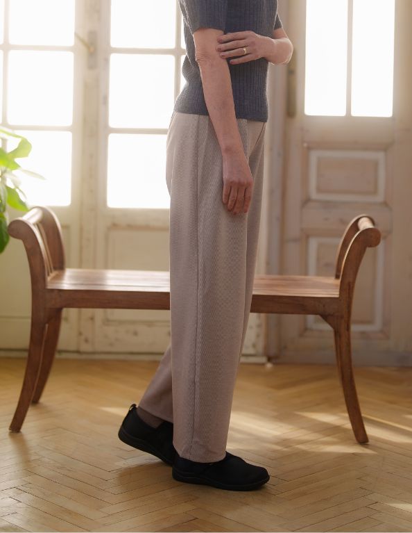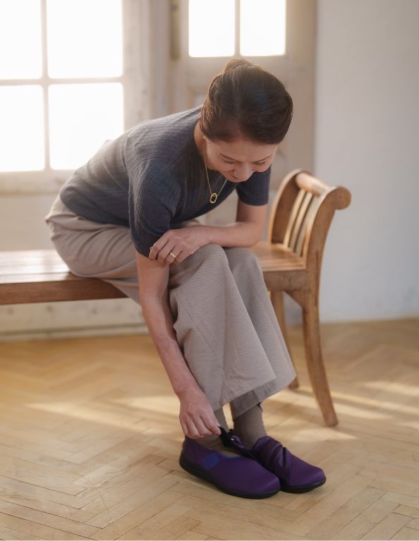 ワンタッチで簡単に開閉できる面ファスナーベルトを採用。 手先の力が弱い方でも扱いやすく、脱ぎ履きのストレスを大幅に軽減します。 忙しい朝や外出時もスムーズに準備が整います。