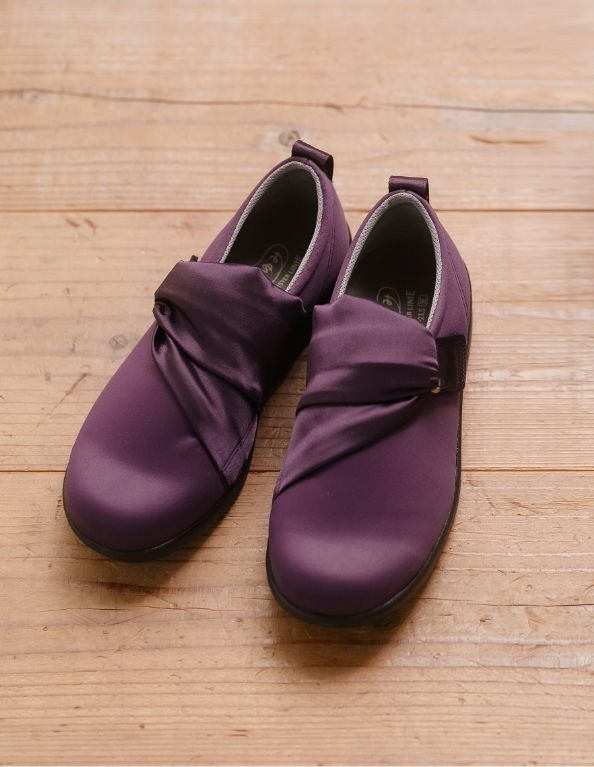 ”おしゃれと機能性を両立‟ 毎日を自分らしく歩くためのケアシューズ。 大きく開く履き口で、スッと足入れ。 自然な足運びを叶える、こだわりの設計です。 おうち時間にも、 ちょっとそこまでのお出かけにも、 気分よくフィット! おでかけしたくなる一足です。