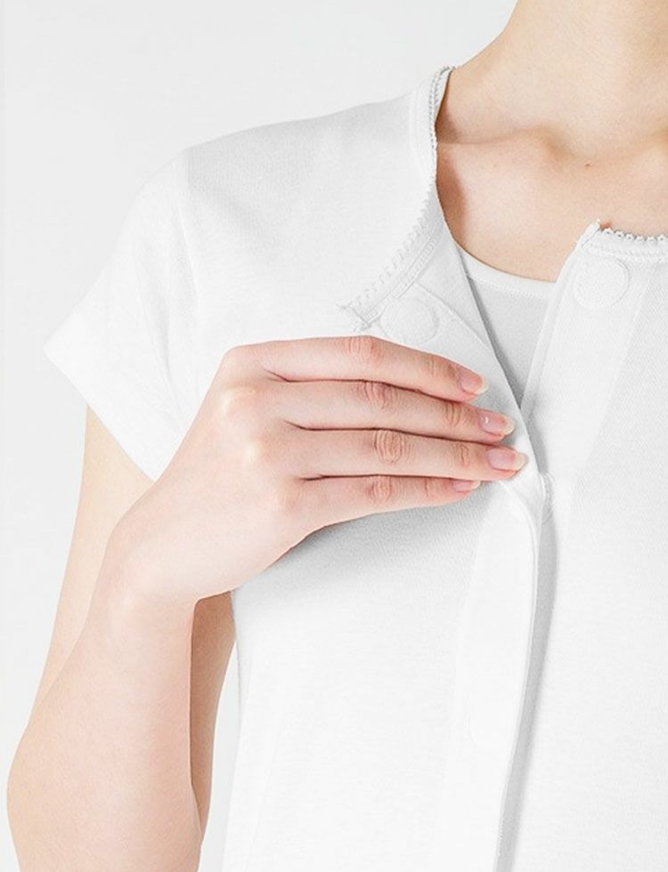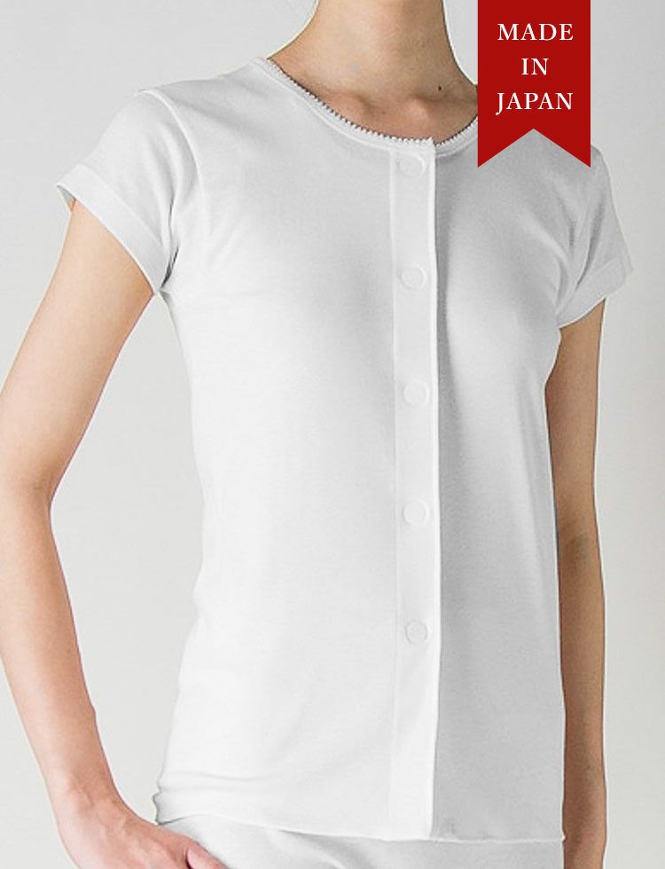 レディース 前開きワンタッチ肌着 綿100% 半袖