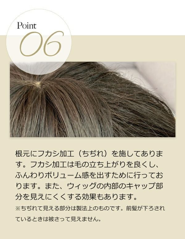 ※ちぢれて見える部分は製法上のものです。前髪が下ろされているときは被さって見えません。