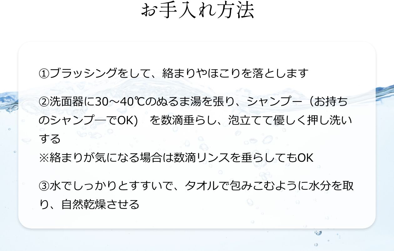 Natural care bangに使用している人工毛(ファイバー)は、高級医療用ウィッグと同じ素材を使っています。 柔らかく、軽くてチクチクしないメンテナンスしやすいファイバーです。より人毛に近い風合いに特殊加工しています。