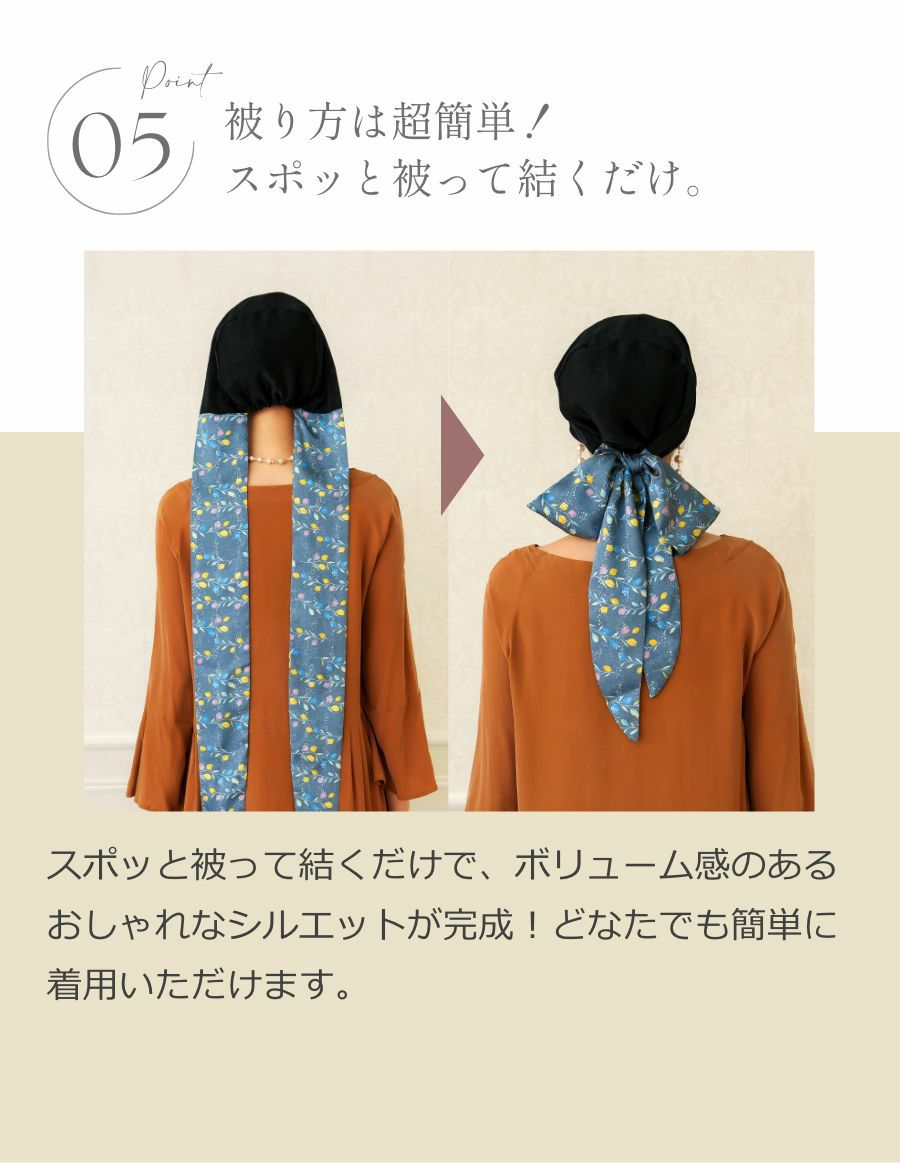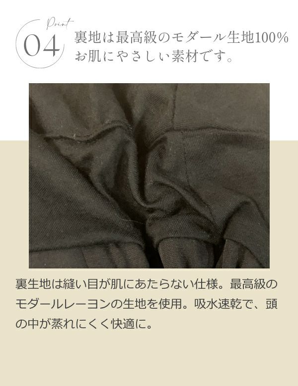 シルクのような滑らかさと通気性を備えたモダール素材が、秋冬の季節もやさしく頭を包み込みます。