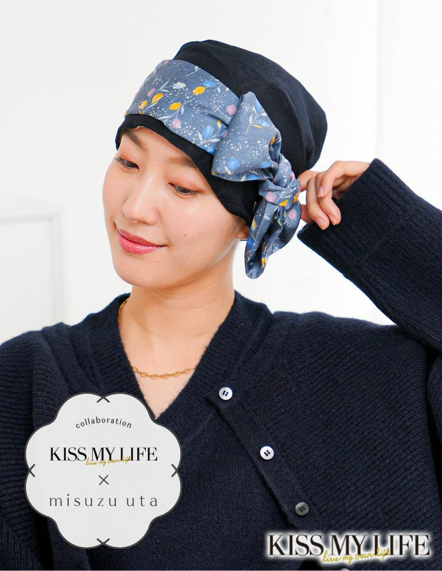 医療用帽子(ケア帽子) -Audrey LUXE- スカーフタイプ/みすゞうたx KISS MY LIFE コラボ 淡雪
