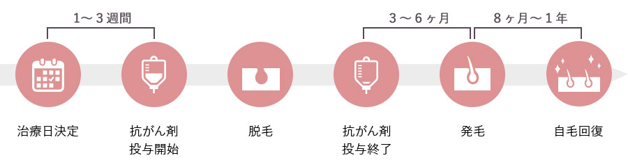 脱毛は抗がん剤を初めて使ってから2~3週間後に始まることが多いです。私は、脱毛開始から約1週間程度で髪が無くなりました。