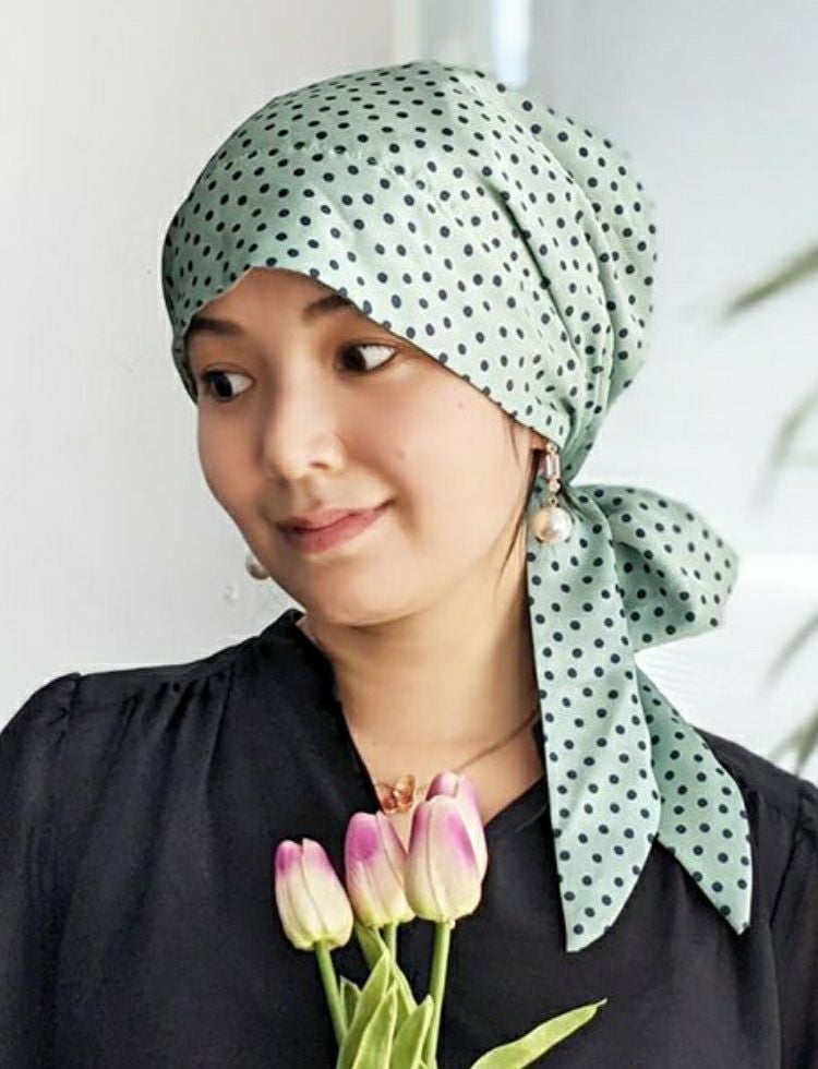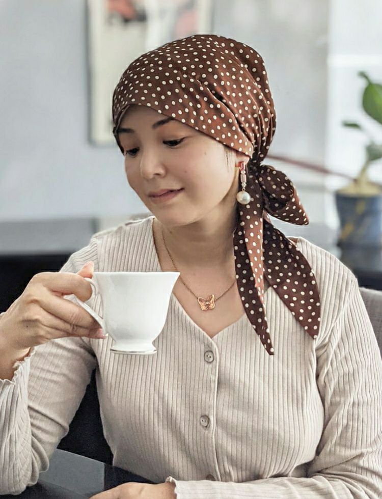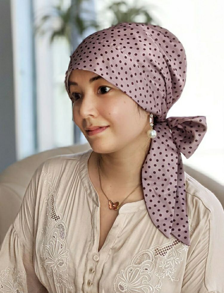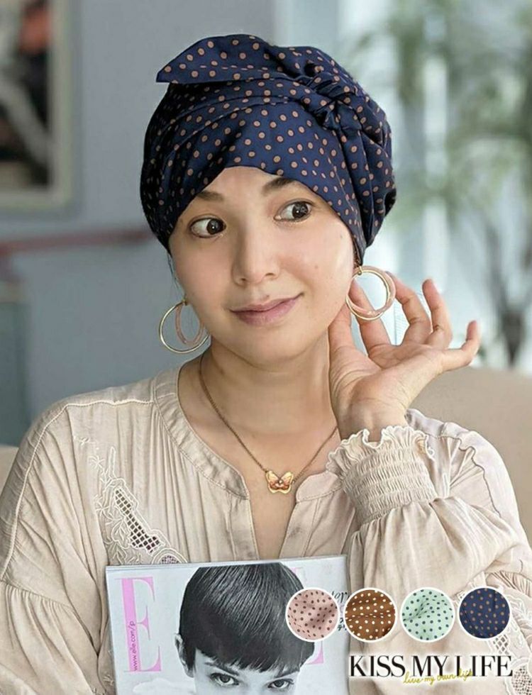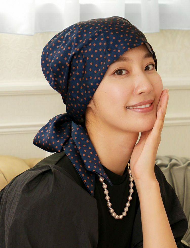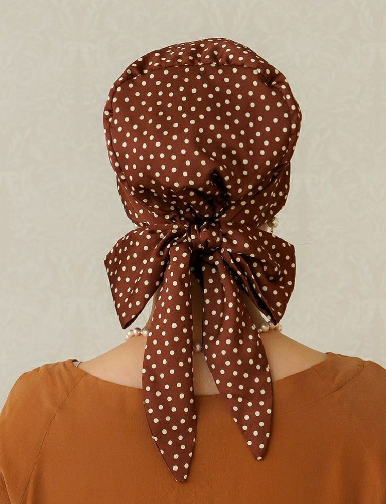 医療用帽子(ケア帽子) -Audrey- スカーフタイプ/Chocolat Dot