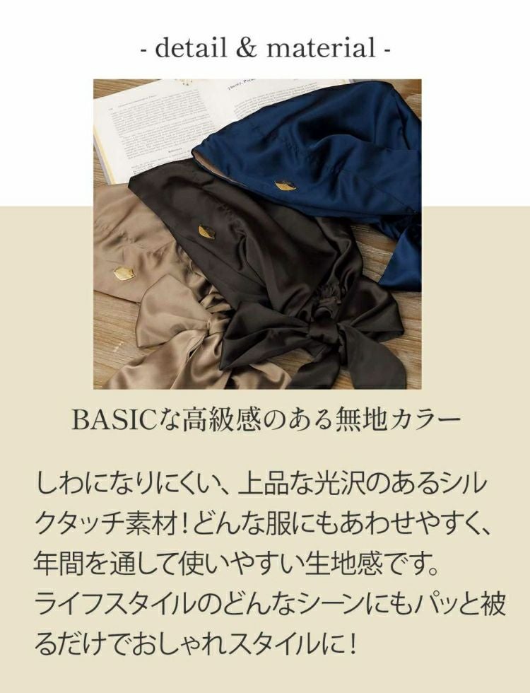 しわになりにくい、上品な光沢のあるシルクタッチ素材!どんな服にもあわせやすく、年間を通して使いやすい生地感です。