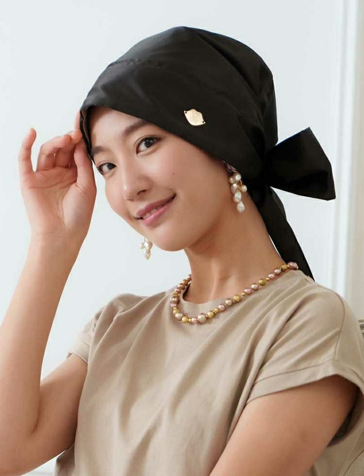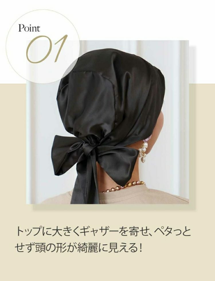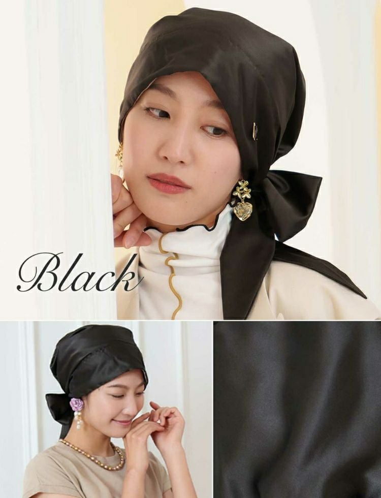 商品について◎リボンを頭の上にあげて就寝時にも、リボンを襟足で結んでお出かけ仕様のスカーフタイプとしても、2wayで楽しめます