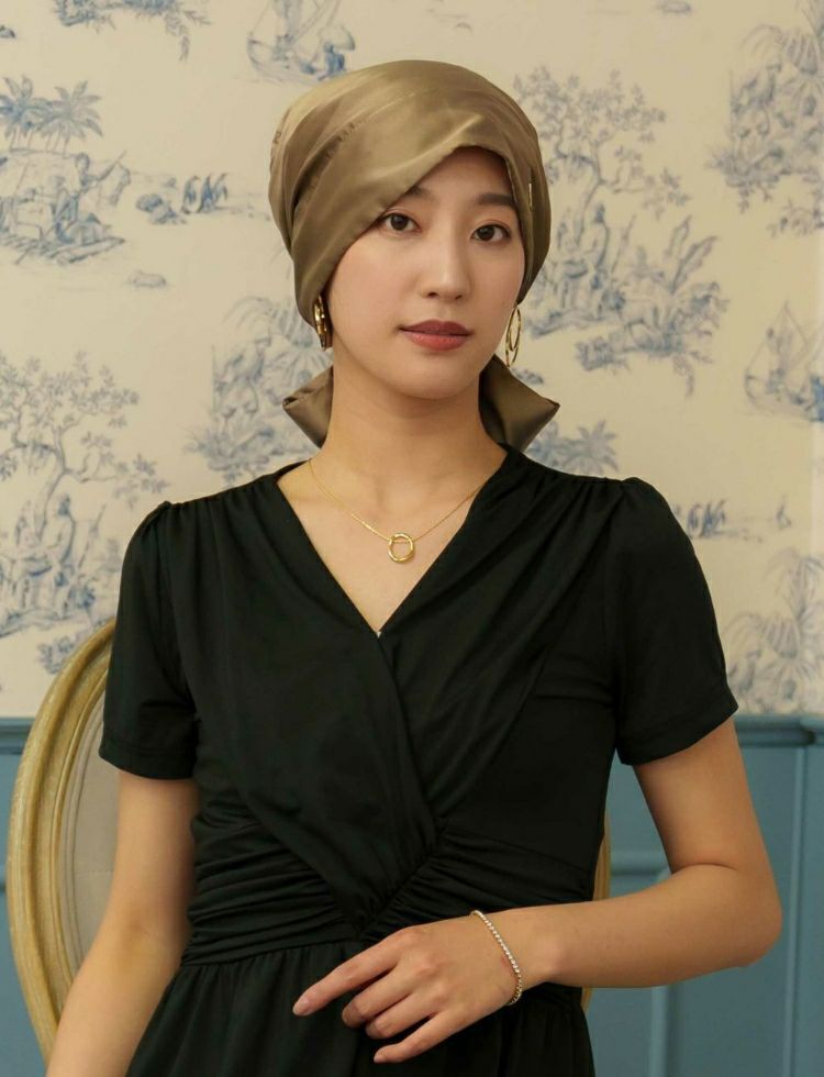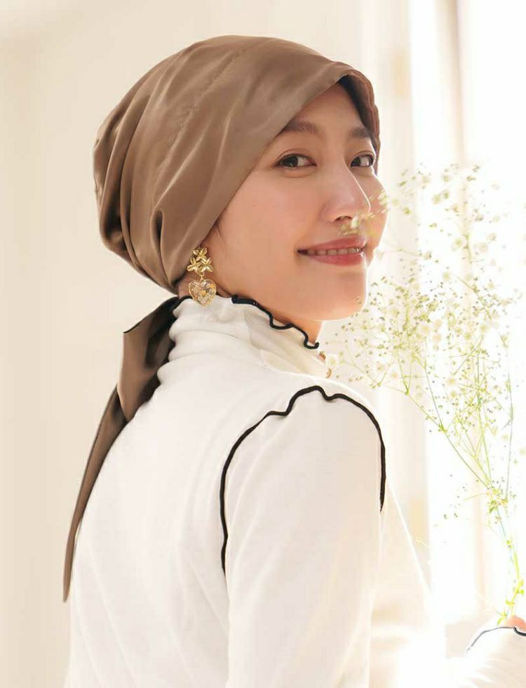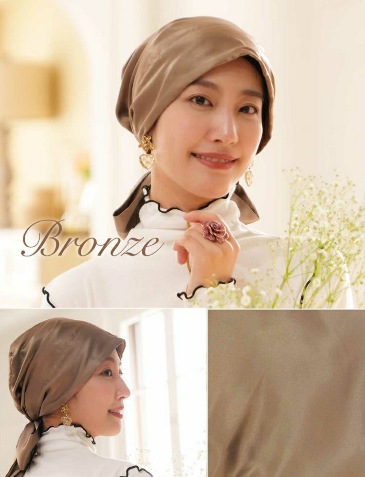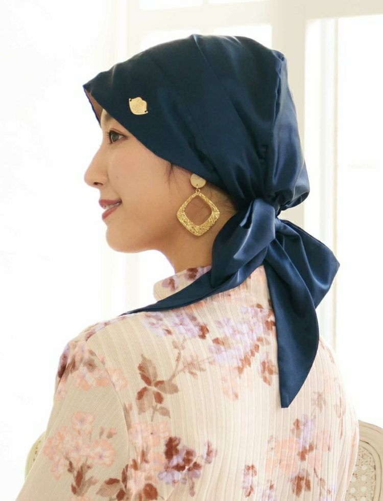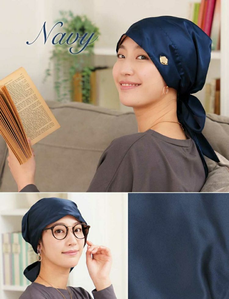 しわになりにくい、上品な光沢のあるシルクタッチ素材!どんな服にもあわせやすく、年間を通して使いやすい生地感です。ライフスタイルのどんなシーンにもパッと被るだけでおしゃれスタイルに! 医療用帽子(ケア帽子) -Audrey- スカーフタイプ/無地