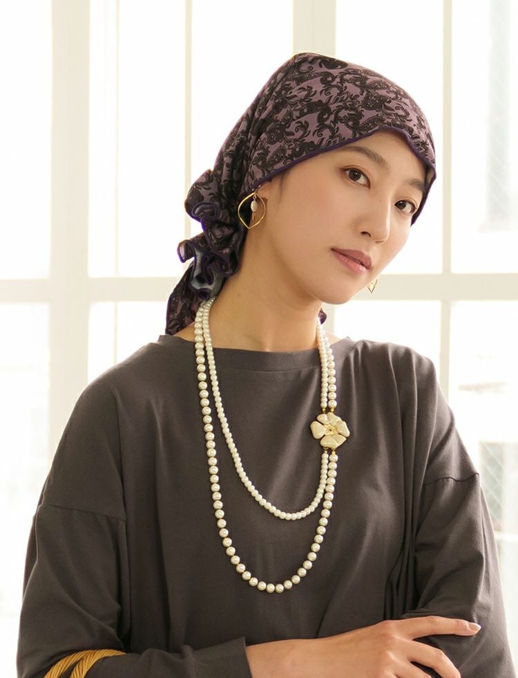 自宅に居る時は、被りやすいレースタイプ。カジュアルなお出掛けは、バンダナタイプ。…と切り替えて楽しんでいます。