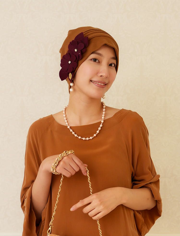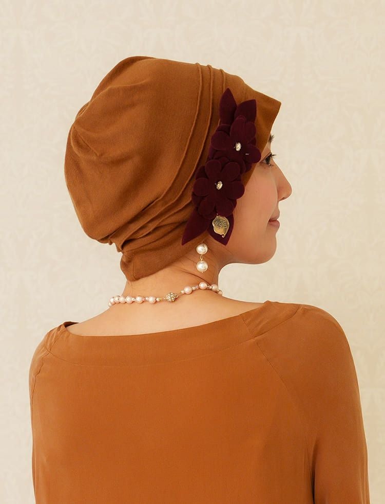 医療用帽子(ケア帽子) -Jean- ドレープタイプ/花コサージュ
