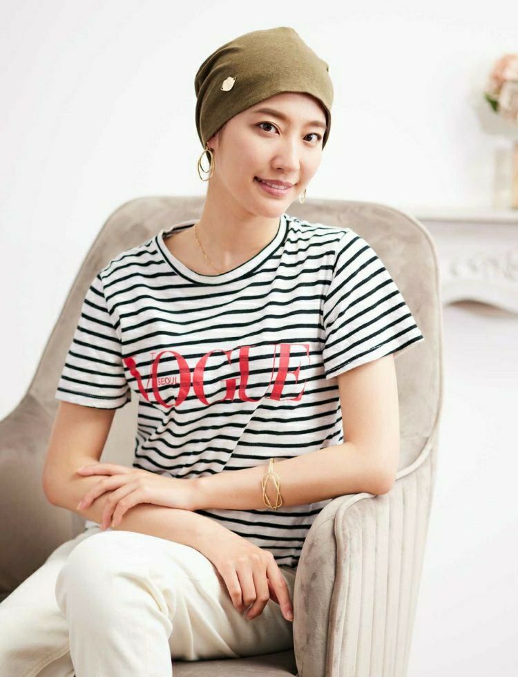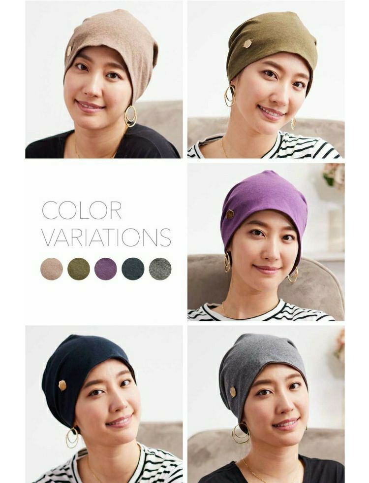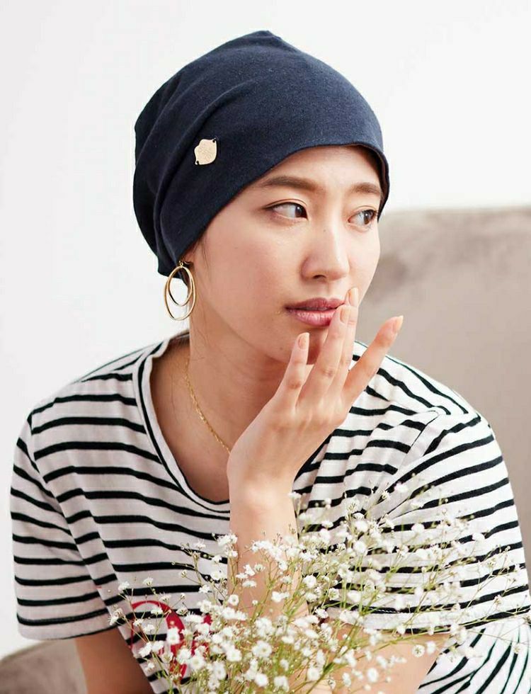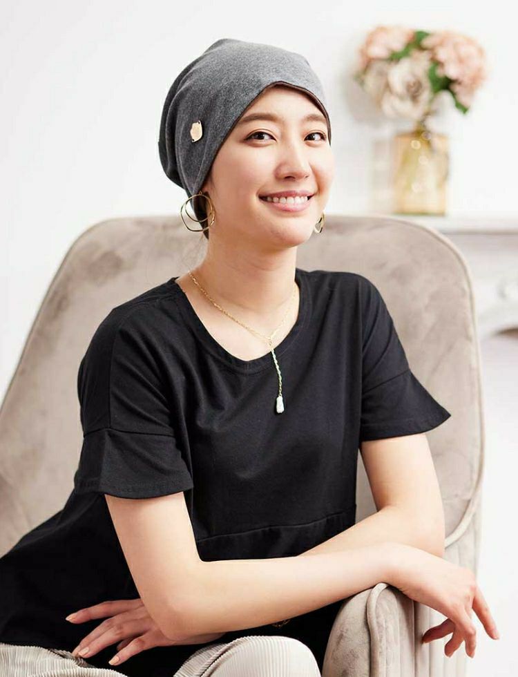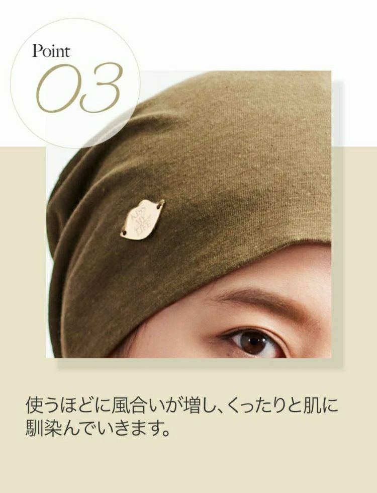 髪がなくニット帽子を被るとペタッとしちゃうので、クシュっと被れて小顔効果もUP!