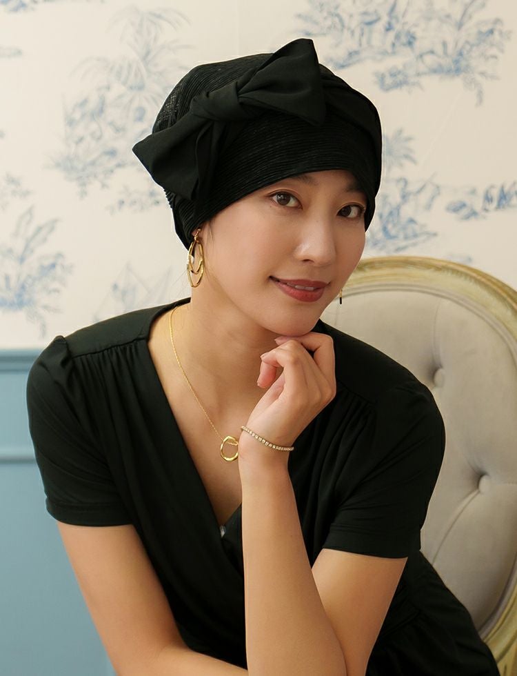 ※リボンでサイズ感を調整できるので、ウイッグ使用時でも脱毛時でも状況に合わせてご利用いただけます。