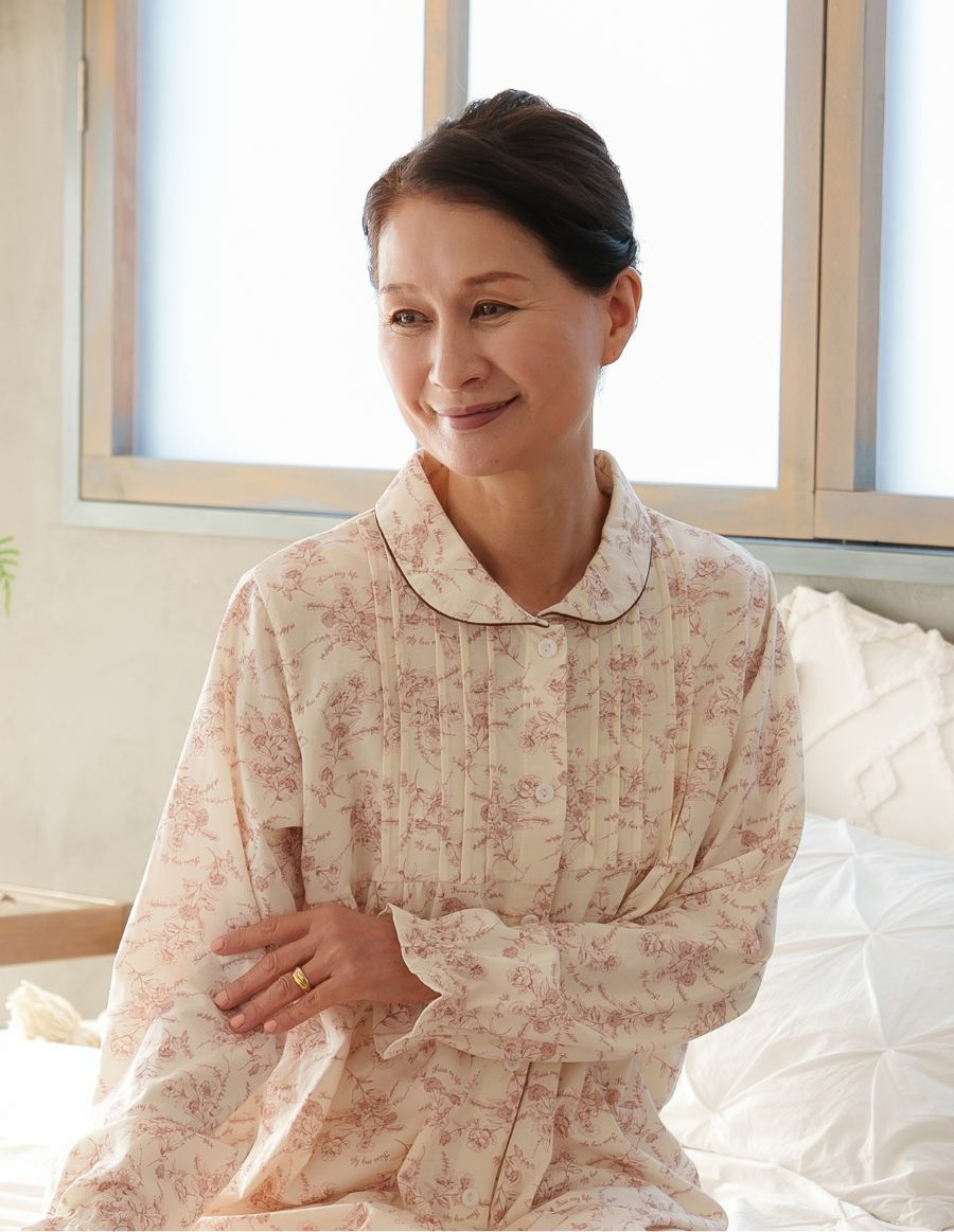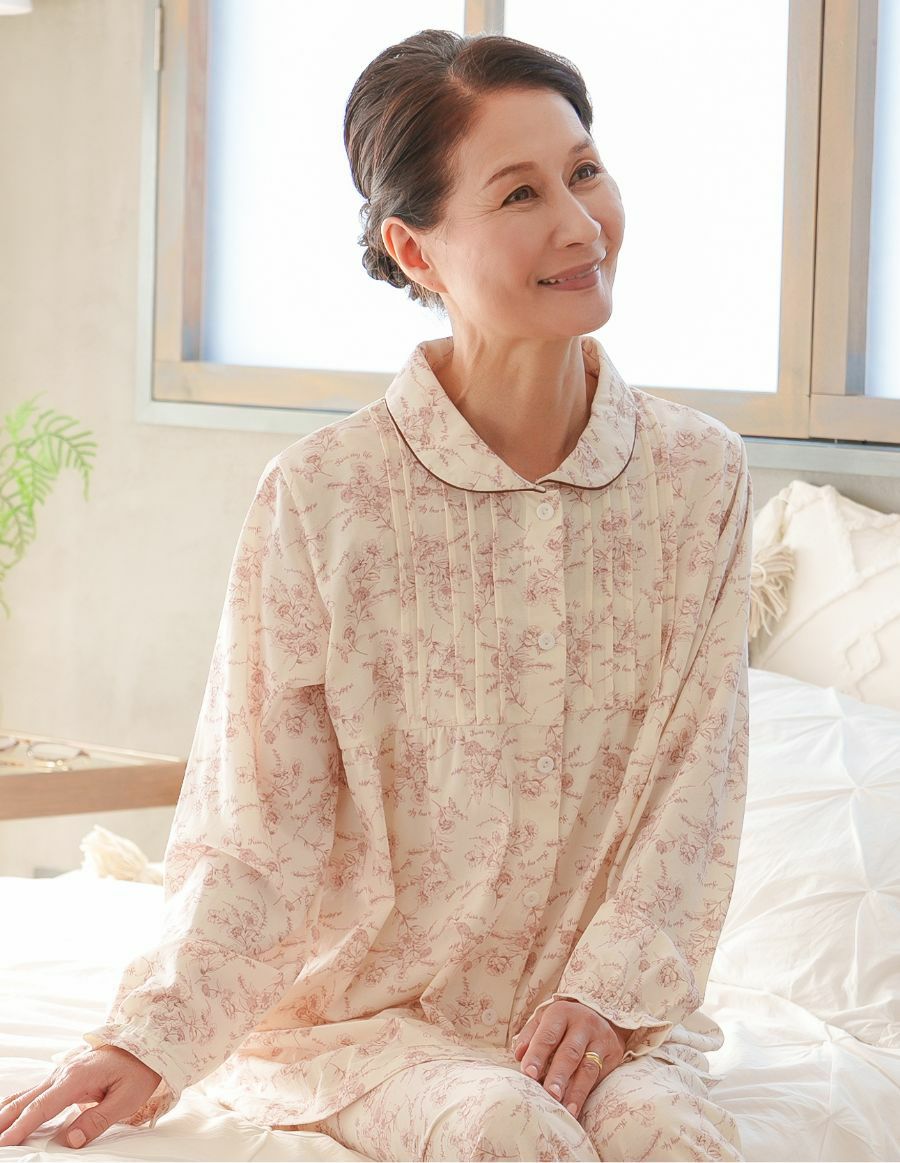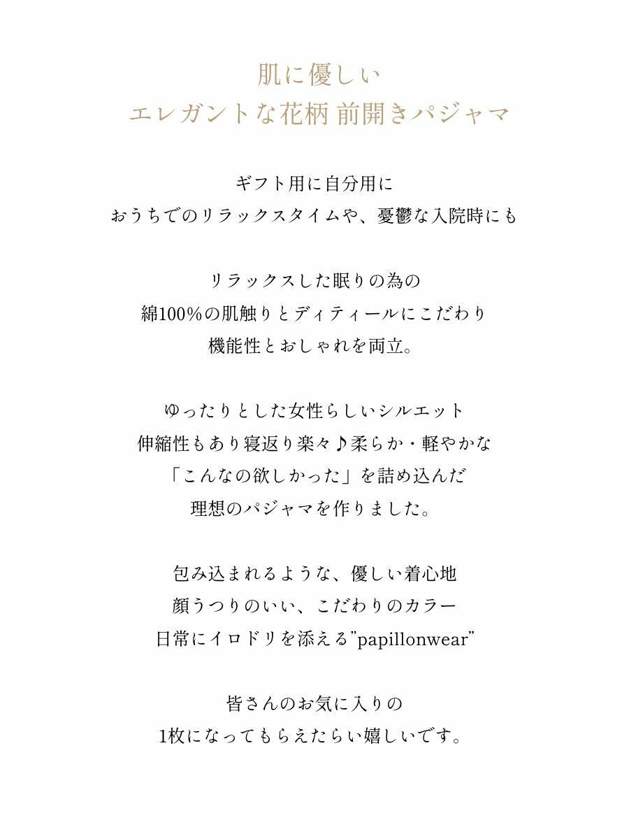 前開きでガーゼ素材のパジャマ。デパートで人気の肌ざわりの良いパジャマがギフトにおすすめ!