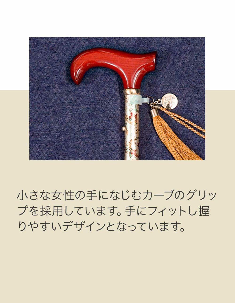 40代の頃から足の障害がありステッキを使用。むかしは、高齢者むけの地味な物ばかりでした。 この商品は華やかで心が弾みます! お出かけが楽しみです。 早々に送って頂きありがとうございました。