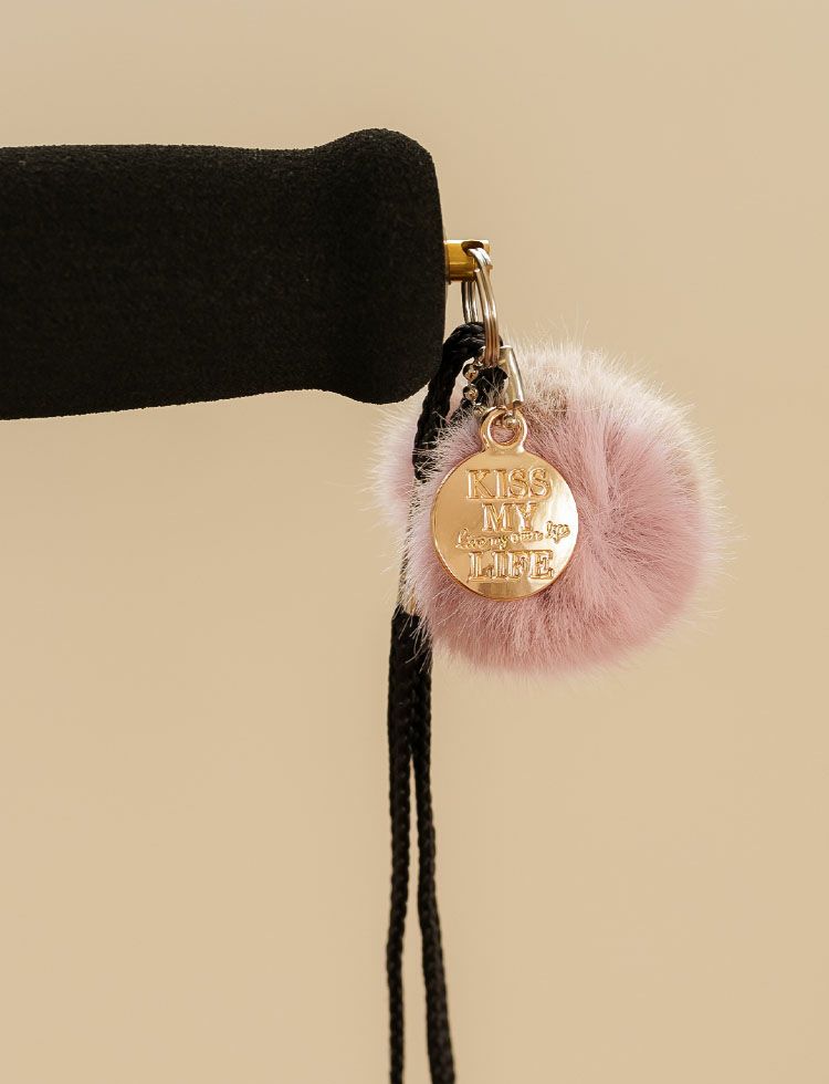 ◎ふわふわの2トーンカラーのラビットファーとゴールドのチャームで高級感をUP!