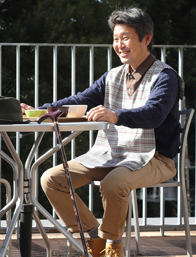 旦那は手指の巧緻性低下による取りこぼしが増えてきたけれど、エプロンへの強い抵抗感がありこれまで拒んできました。そのため、背中を丸めて前屈みに食べてしまい誤嚥リスクがあったのですが、こちらのデザインは受け入れてくれました。一安心です。