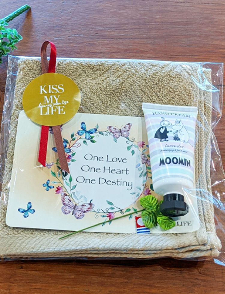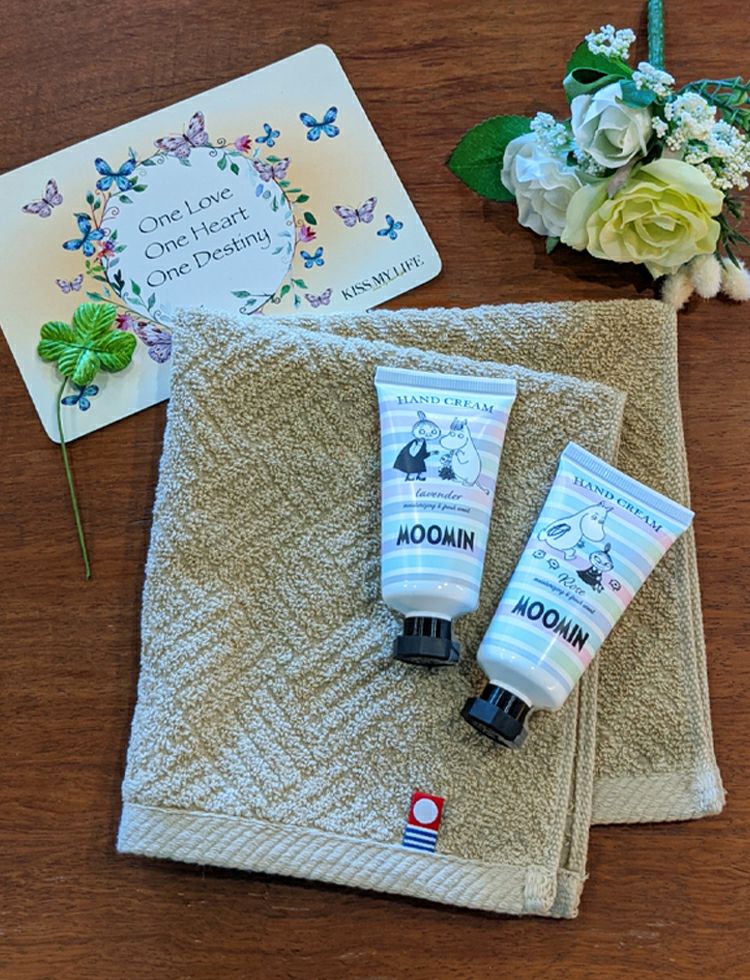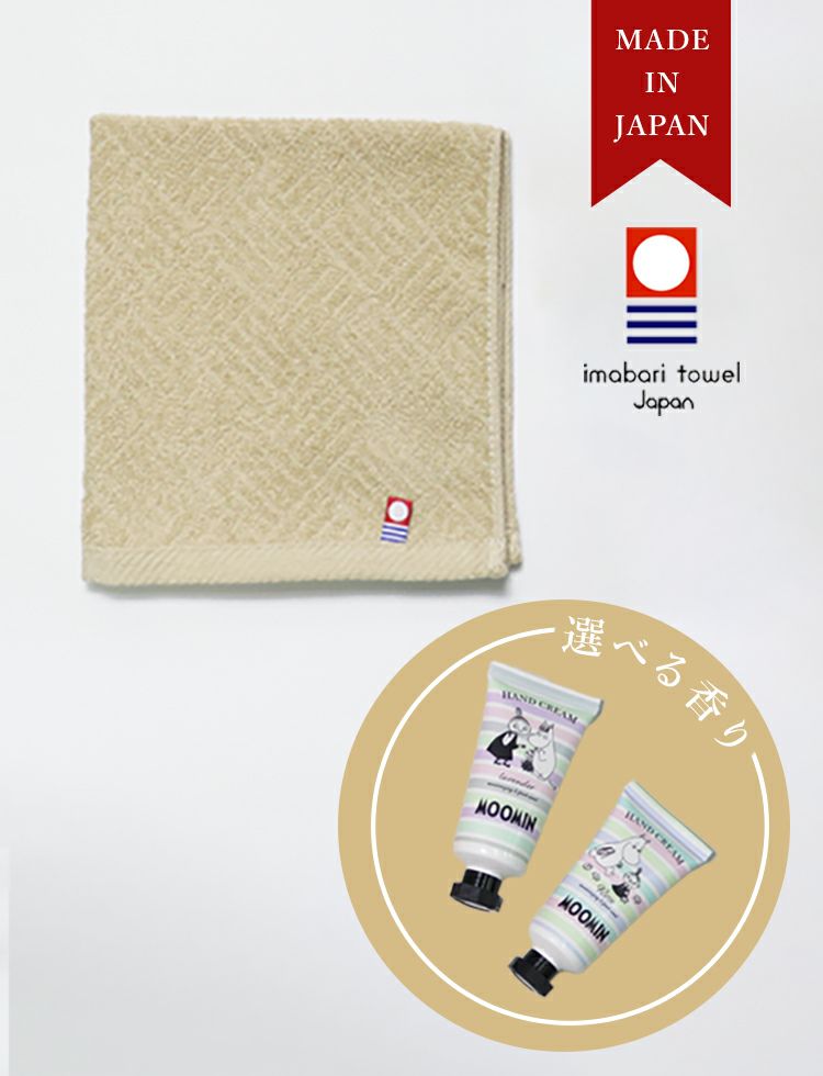 今治ハンドタオルとムーミンハンドクリームのプチギフトセットです。