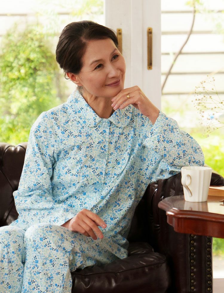 綿100% 前開きパジャマ 小花柄